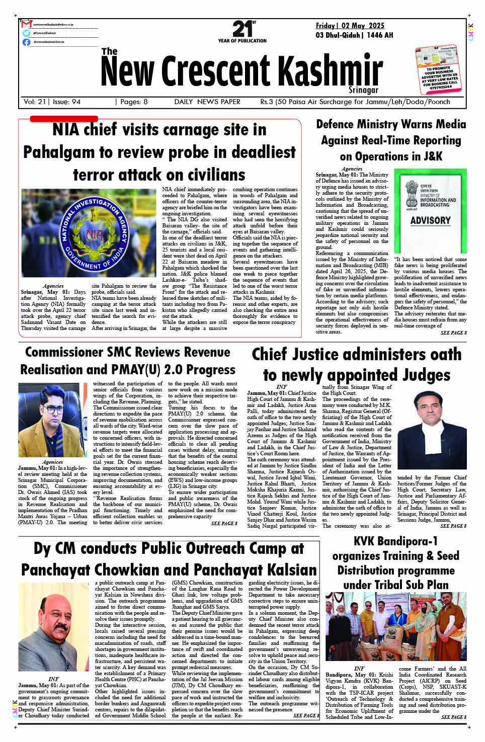 Crescent Kashmir 02-05-2025 May 02, 2025 << First << 1 >> Last >> Page 1Page 2Page 3Page 4Page 5Page 6Page 7Page 8 × Crescent Kashmir 02-05-2025 << First << 1 >> Last >> CK 1CK 2CK 3CK 4CK 5CK 6CK 7CK 8 CK 1