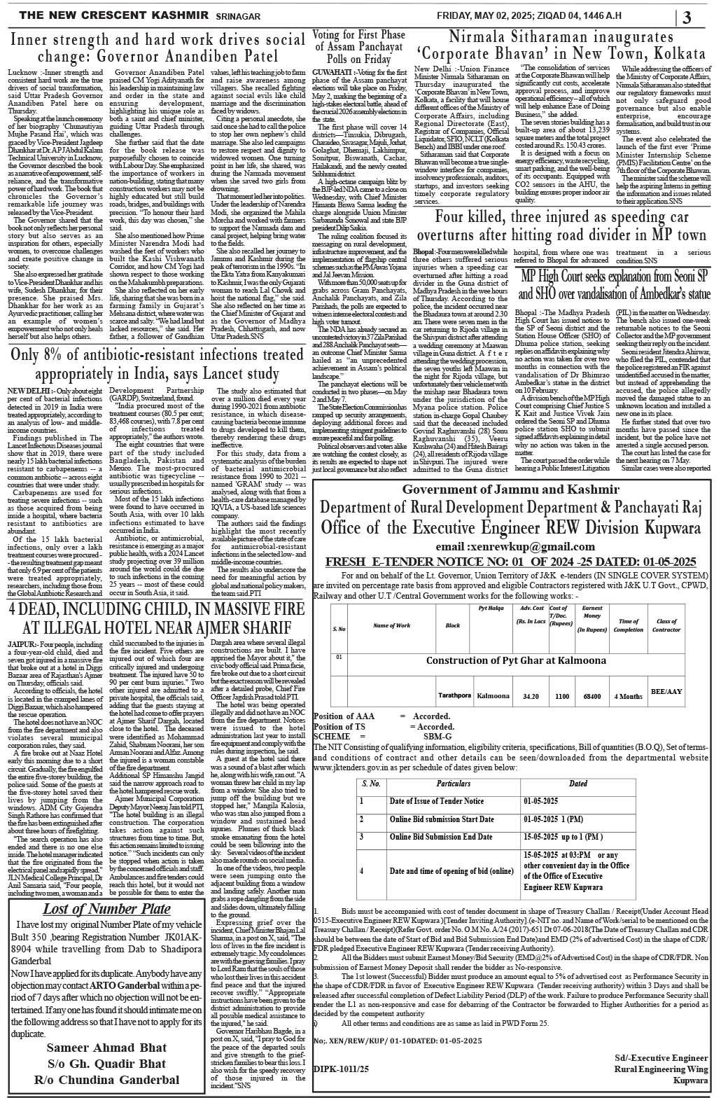 Crescent Kashmir 02-05-2025 Page: 3 May 02, 2025 << First << 3 >> Last >> Page 1Page 2Page 3Page 4Page 5Page 6Page 7Page 8 × Crescent Kashmir 02-05-2025 << First << 3 >> Last >> CK 1CK 2CK 3CK 4CK 5CK 6CK 7CK 8 CK 3