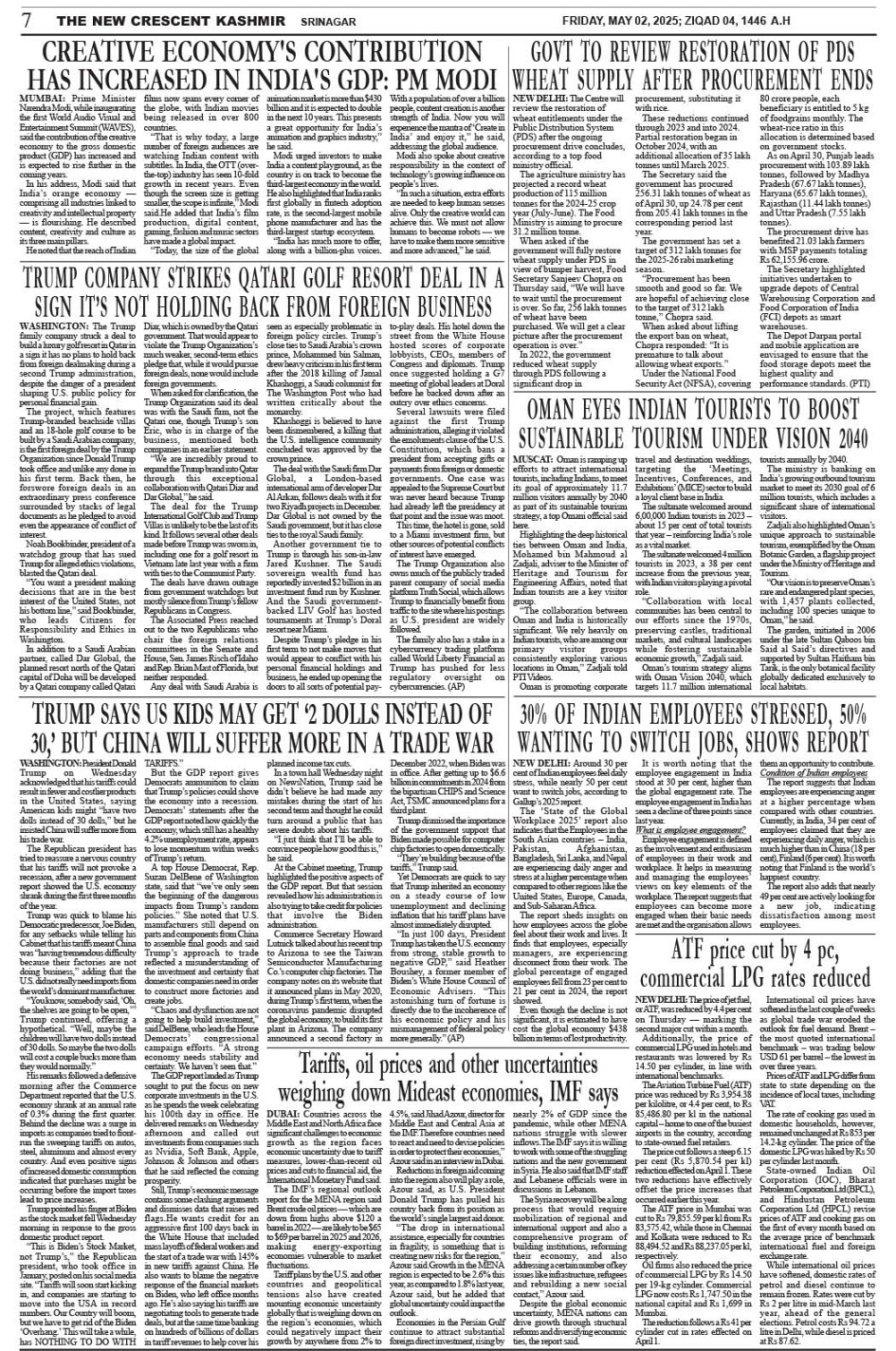 Crescent Kashmir 02-05-2025 Page: 7 May 02, 2025 << First << 7 >> Last >> Page 1Page 2Page 3Page 4Page 5Page 6Page 7Page 8 × Crescent Kashmir 02-05-2025 << First << 7 >> Last >> CK 1CK 2CK 3CK 4CK 5CK 6CK 7CK 8 CK 7