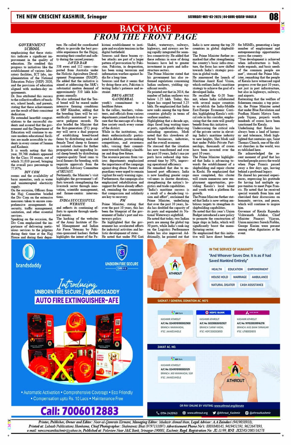 Crescent Kashmir 03-05-2025 Page: 8 May 03, 2025 << First << 8 >> Last >> Page 1Page 2Page 3Page 4Page 5Page 6Page 7Page 8 × Crescent Kashmir 03-05-2025 << First << 8 >> Last >> CK 1CK 2CK 3CK 4CK 5CK 6CK 7CK 8 CK 8