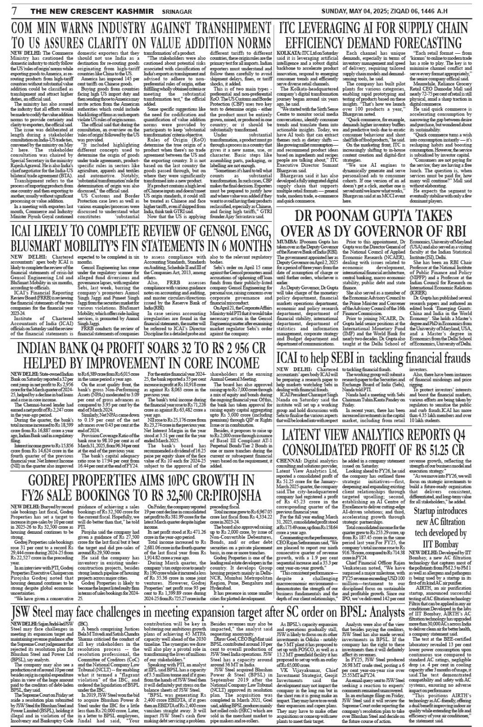 Crescent Kashmir 04-05-2025 Page: 7 May 04, 2025 << First << 7 >> Last >> Page 1Page 2Page 3Page 4Page 5Page 6Page 7Page 8 × Crescent Kashmir 04-05-2025 << First << 7 >> Last >> CK 1CK 2CK 3CK 4CK 5CK 6CK 7CK 8 CK 7