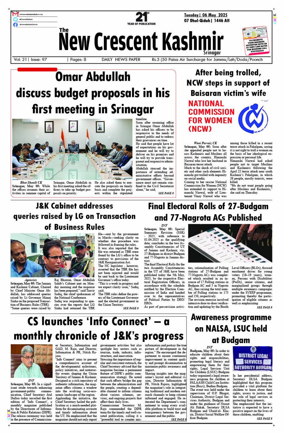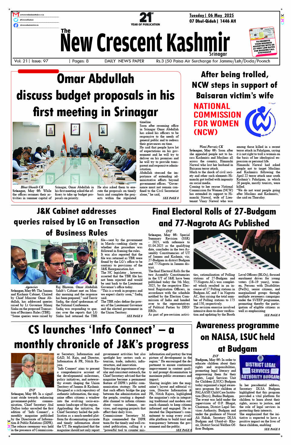 Crescent Kashmir 06-05-2025 May 06, 2025 << First << 1 >> Last >> Page 1Page 2Page 3Page 4Page 5Page 6Page 7Page 8 × Crescent Kashmir 06-05-2025 << First << 1 >> Last >> CK 1CK 2CK 3CK 4CK 5CK 6CK 7CK 8 CK 1