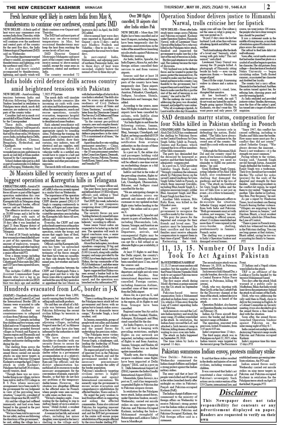 Crescent Kashmir 08-05-2025 Page: 2 May 08, 2025 << First << 2 >> Last >> Page 1Page 2Page 3Page 4Page 5Page 6Page 7Page 8 × Crescent Kashmir 08-05-2025 << First << 2 >> Last >> CK 1CK 2CK 3CK 4CK 5CK 6CK 7CK 8 CK 2