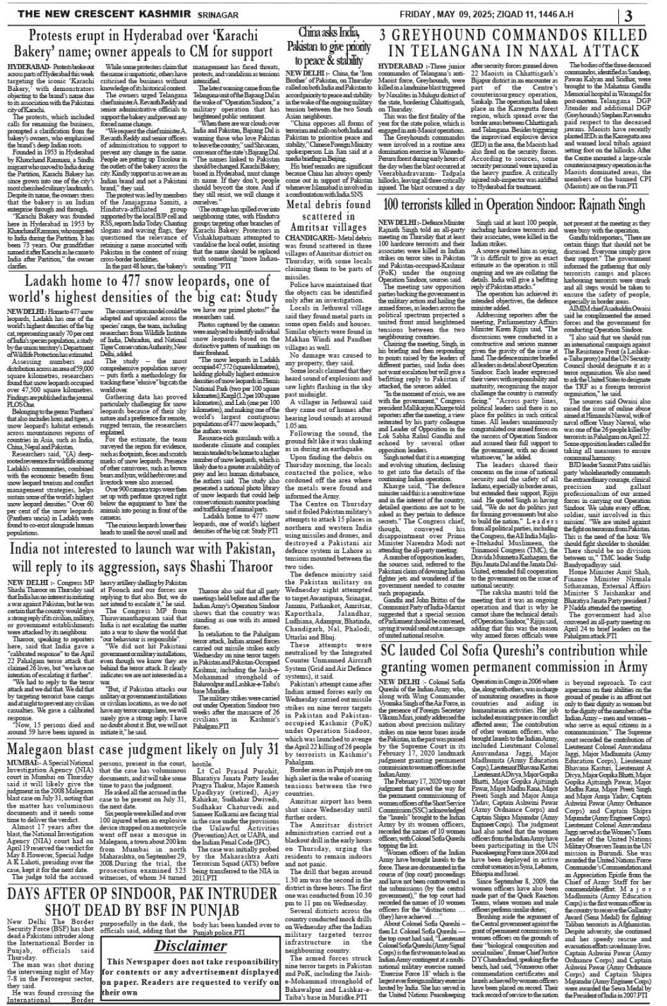 Crescent Kashmir 09-05-2025 Page: 3 May 09, 2025 << First << 3 >> Last >> Page 1Page 2Page 3Page 4Page 5Page 6Page 7Page 8 × Crescent Kashmir 09-05-2025 << First << 3 >> Last >> CK 1CK 2CK 3CK 4CK 5CK 6CK 7CK 8 CK 3