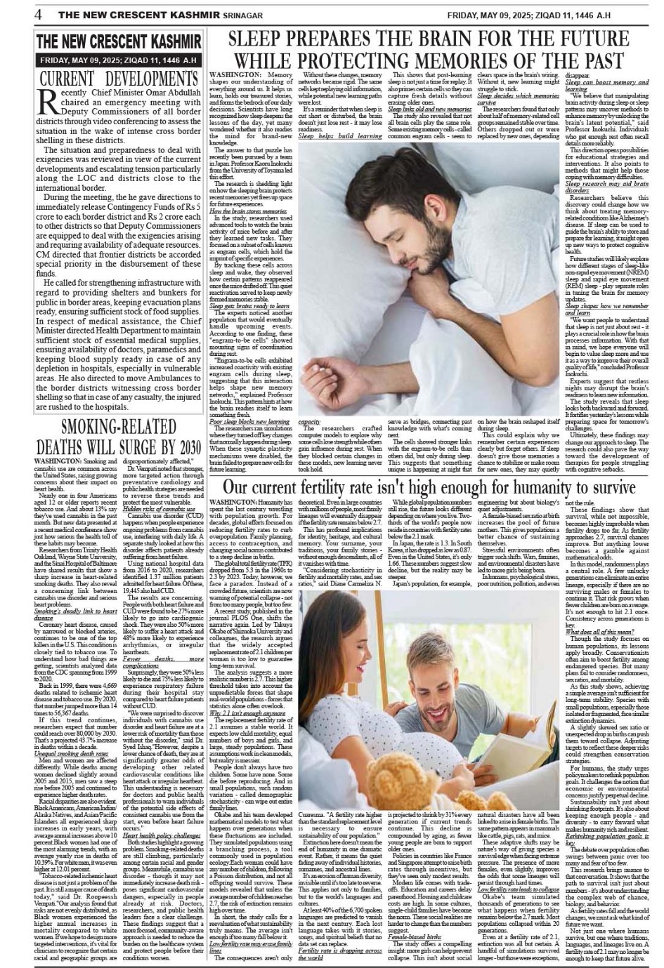 Crescent Kashmir 09-05-2025 Page: 4 May 09, 2025 << First << 4 >> Last >> Page 1Page 2Page 3Page 4Page 5Page 6Page 7Page 8 × Crescent Kashmir 09-05-2025 << First << 4 >> Last >> CK 1CK 2CK 3CK 4CK 5CK 6CK 7CK 8 CK 4