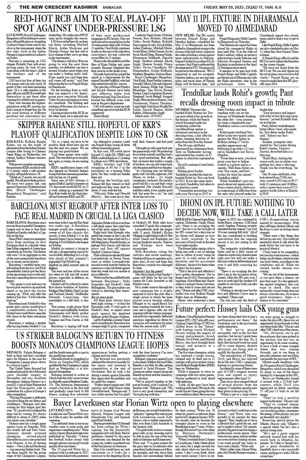 Crescent Kashmir 09-05-2025 Page: 6 May 09, 2025 << First << 6 >> Last >> Page 1Page 2Page 3Page 4Page 5Page 6Page 7Page 8 × Crescent Kashmir 09-05-2025 << First << 6 >> Last >> CK 1CK 2CK 3CK 4CK 5CK 6CK 7CK 8 CK 6