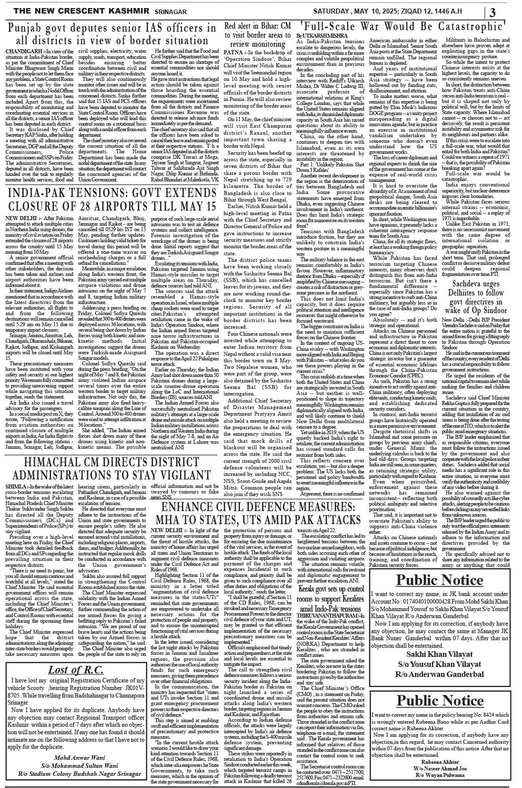 Crescent Kashmir 10-05-2025 Page: 3 May 10, 2025 << First << 3 >> Last >> Page 1Page 2Page 3Page 4Page 5Page 6Page 7Page 8 × Crescent Kashmir 10-05-2025 << First << 3 >> Last >> CK 1CK 2CK 3CK 4CK 5CK 6CK 7CK 8 CK 3