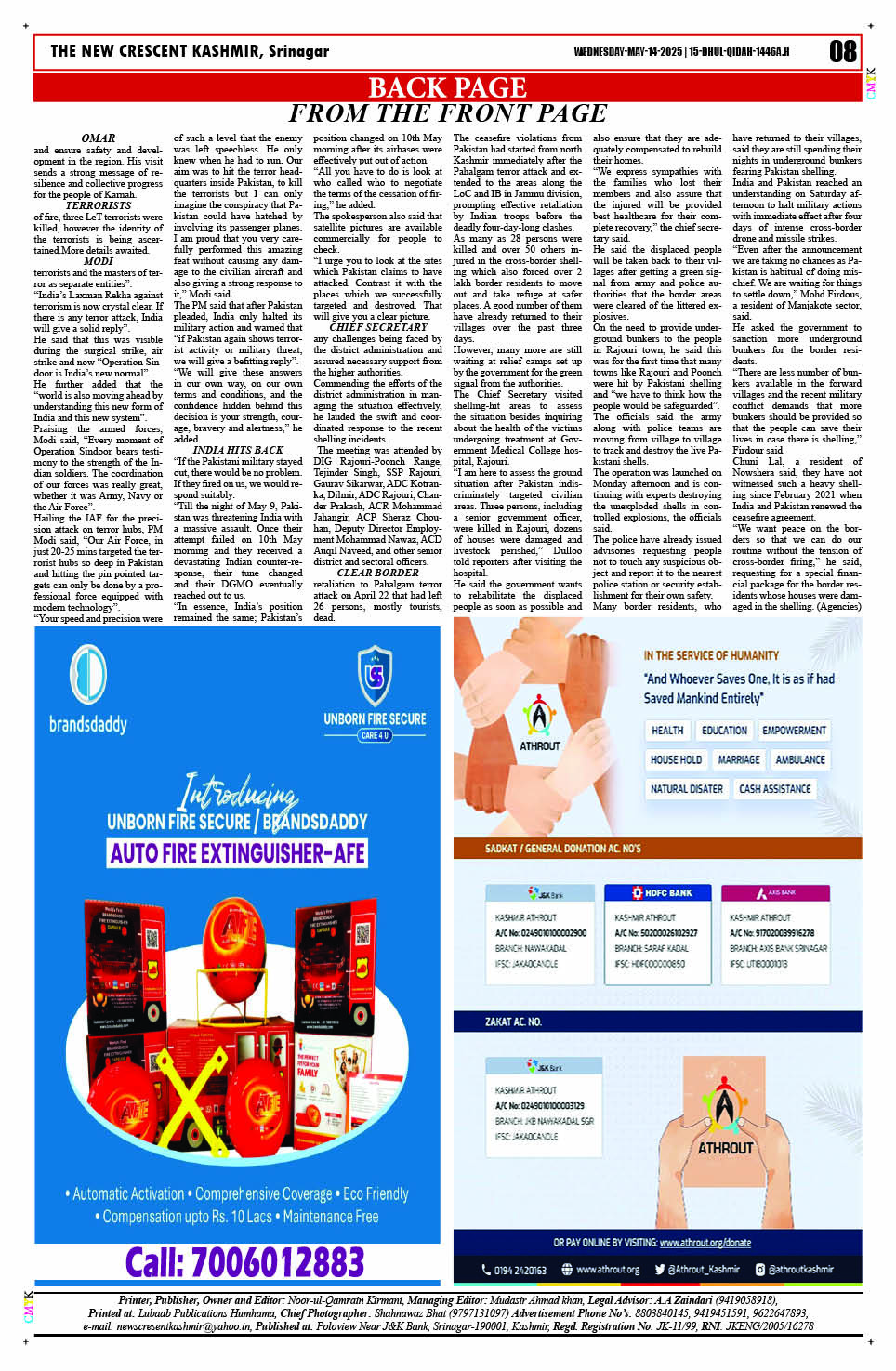 Crescent Kashmir 14-05-2025 Page: 8 May 14, 2025 << First << 8 >> Last >> Page 1Page 2Page 3Page 4Page 5Page 6Page 7Page 8 × Crescent Kashmir 14-05-2025 << First << 8 >> Last >> CK 1CK 2CK 3CK 4CK 5CK 6CK 7CK 8 CK 8