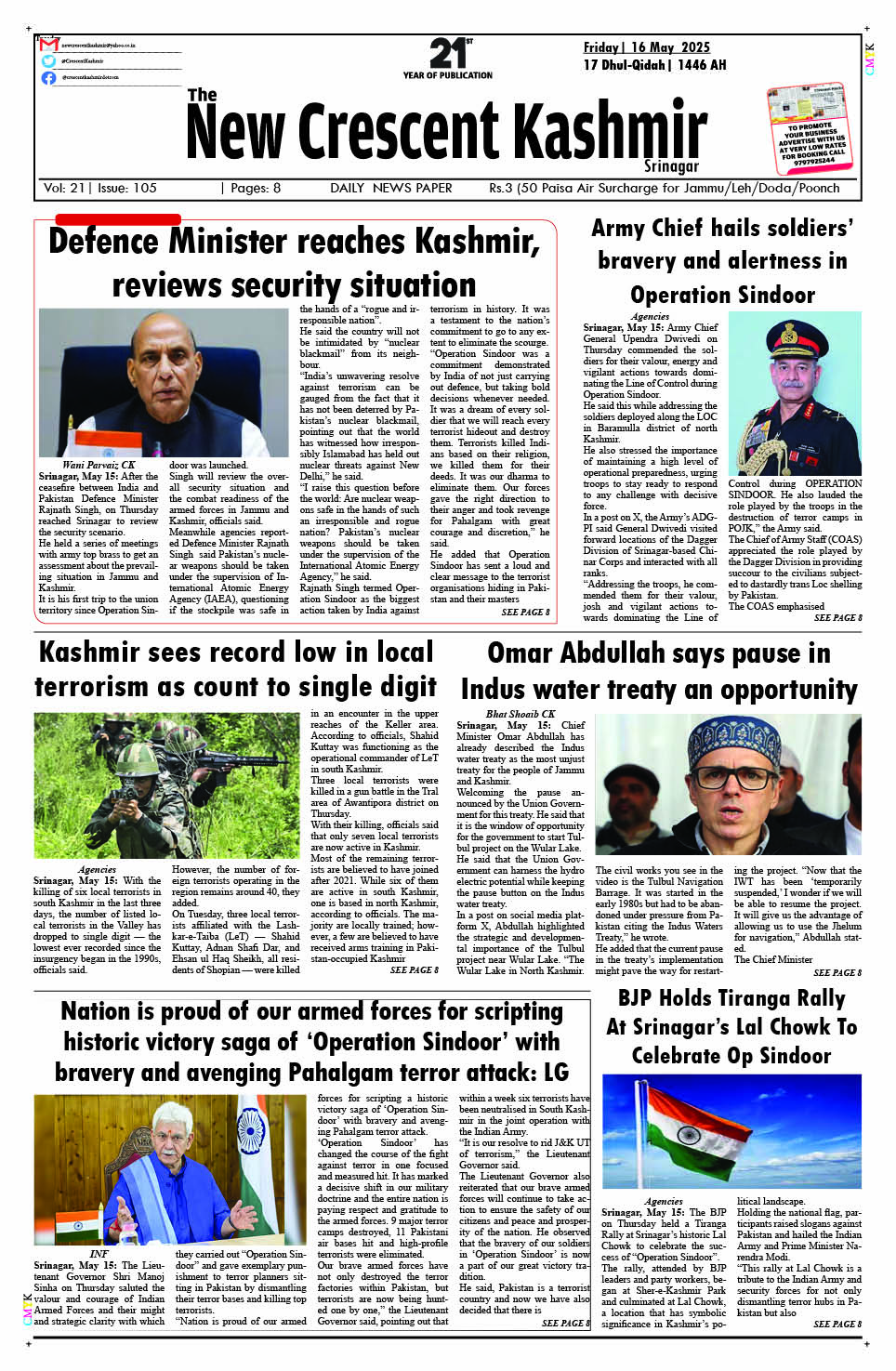 Crescent Kashmir 16-05-2025 May 16, 2025 << First << 1 >> Last >> Page 1Page 2Page 3Page 4Page 5Page 6Page 7Page 8 × Crescent Kashmir 16-05-2025 << First << 1 >> Last >> CK 1CK 2CK 3CK 4CK 5CK 6CK 7CK 8 CK 1