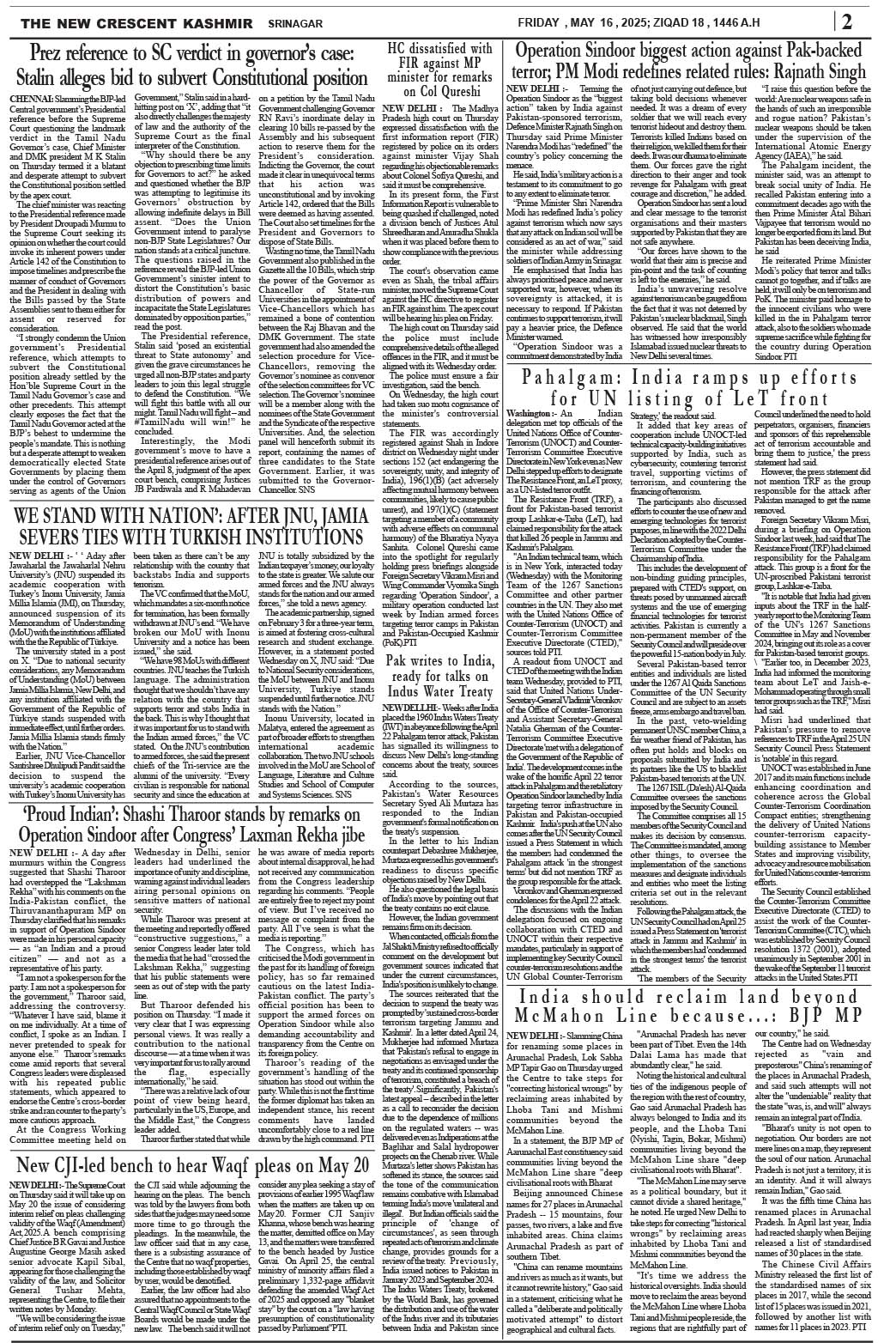 Crescent Kashmir 16-05-2025 Page: 2 May 16, 2025 << First << 2 >> Last >> Page 1Page 2Page 3Page 4Page 5Page 6Page 7Page 8 × Crescent Kashmir 16-05-2025 << First << 2 >> Last >> CK 1CK 2CK 3CK 4CK 5CK 6CK 7CK 8 CK 2