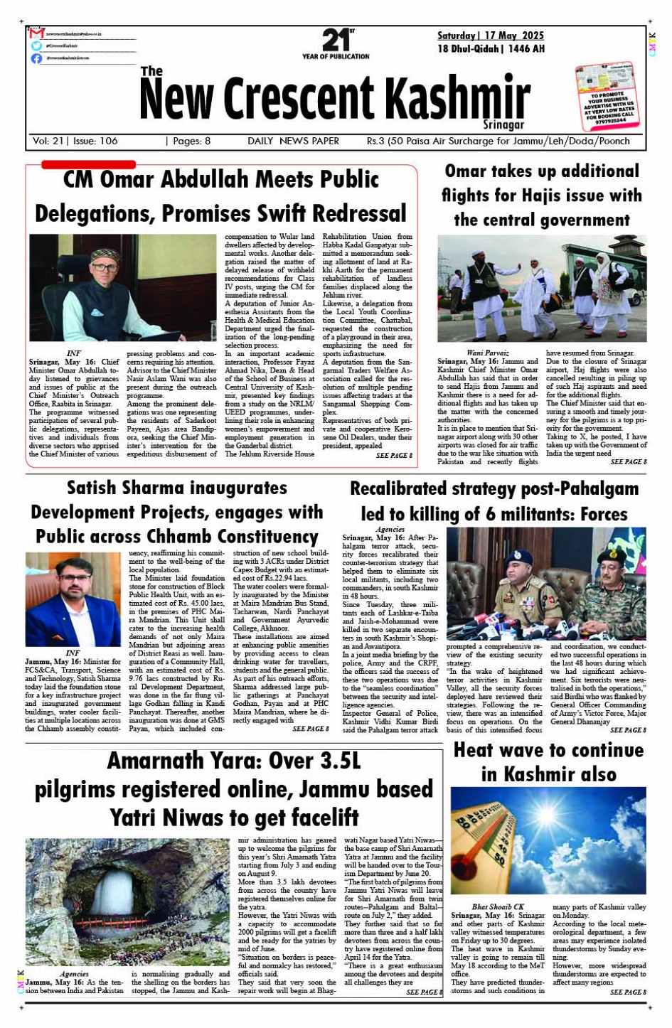 Crescent Kashmir 17-05-2025 May 17, 2025 << First << 1 >> Last >> Page 1Page 2Page 3Page 4Page 5Page 6Page 7Page 8 × Crescent Kashmir 17-05-2025 << First << 1 >> Last >> CK 1CK 2CK 3CK 4CK 5CK 6CK 7CK 8 CK 1
