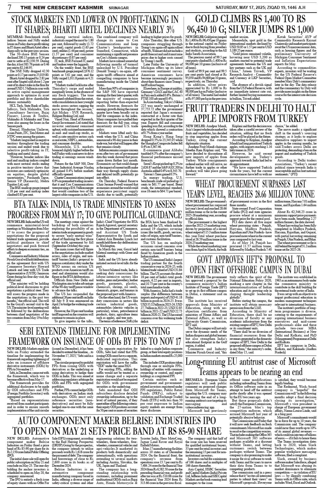 Crescent Kashmir 17-05-2025 Page: 7 May 17, 2025 << First << 7 >> Last >> Page 1Page 2Page 3Page 4Page 5Page 6Page 7Page 8 × Crescent Kashmir 17-05-2025 << First << 7 >> Last >> CK 1CK 2CK 3CK 4CK 5CK 6CK 7CK 8 CK 7