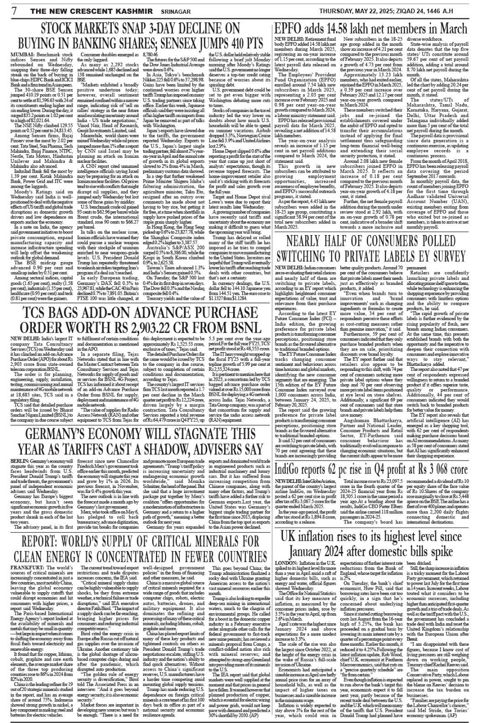 Crescent Kashmir 22-05-2025 Page: 6 May 22, 2025 << First << 6 >> Last >> Page 1Page 2Page 3Page 4Page 5Page 6Page 7 × Crescent Kashmir 22-05-2025 << First << 6 >> Last >> CK 2CK 3CK 4CK 5CK 6CK 7CK 8 CK 7