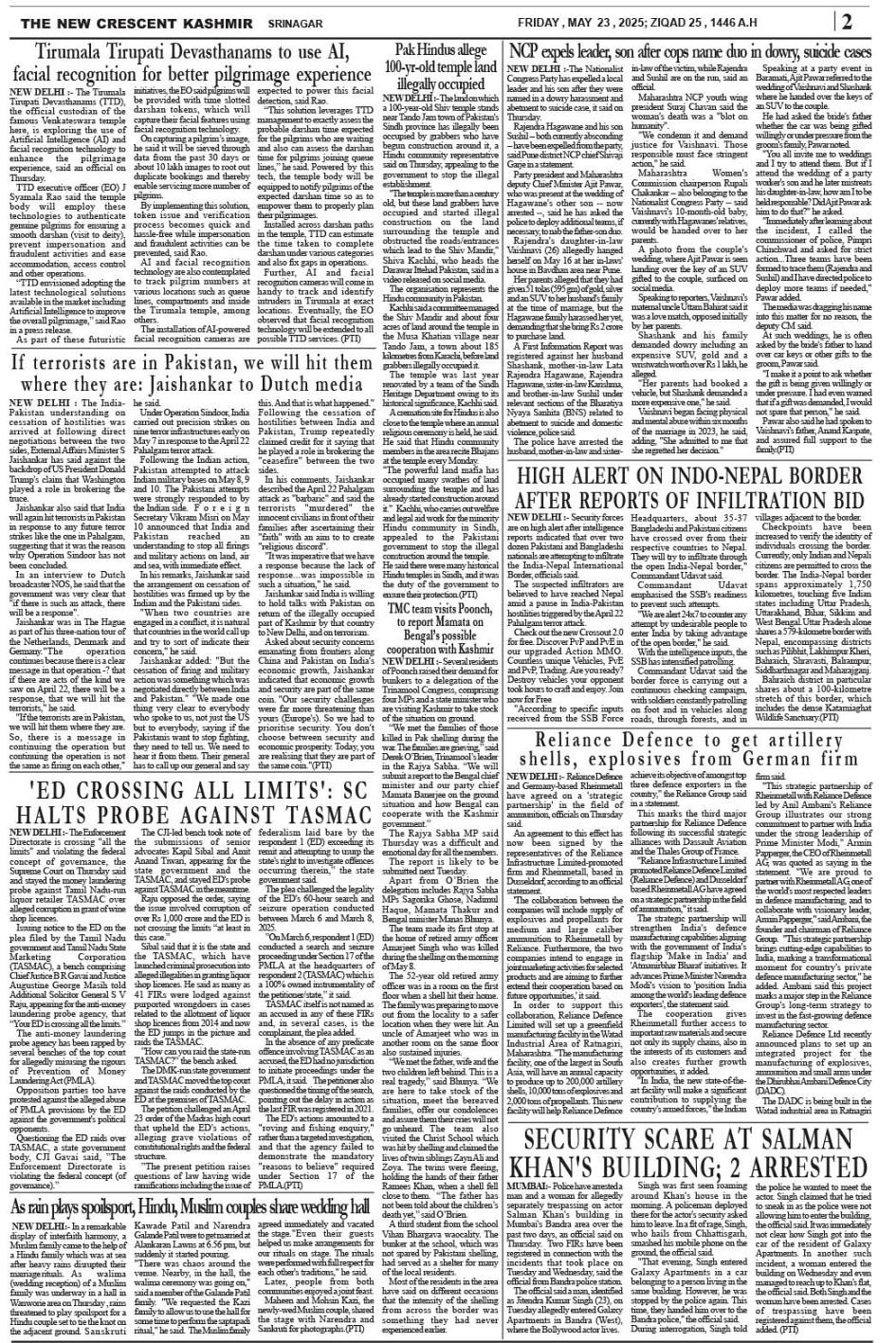 Crescent Kashmir 23-05-2025 Page: 2 May 23, 2025 << First << 2 >> Last >> Page 1Page 2Page 3Page 4Page 5Page 6Page 7Page 8 × Crescent Kashmir 23-05-2025 << First << 2 >> Last >> CK 1CK 2CK 3CK 4CK 5CK 6CK 7CK 8 CK 2
