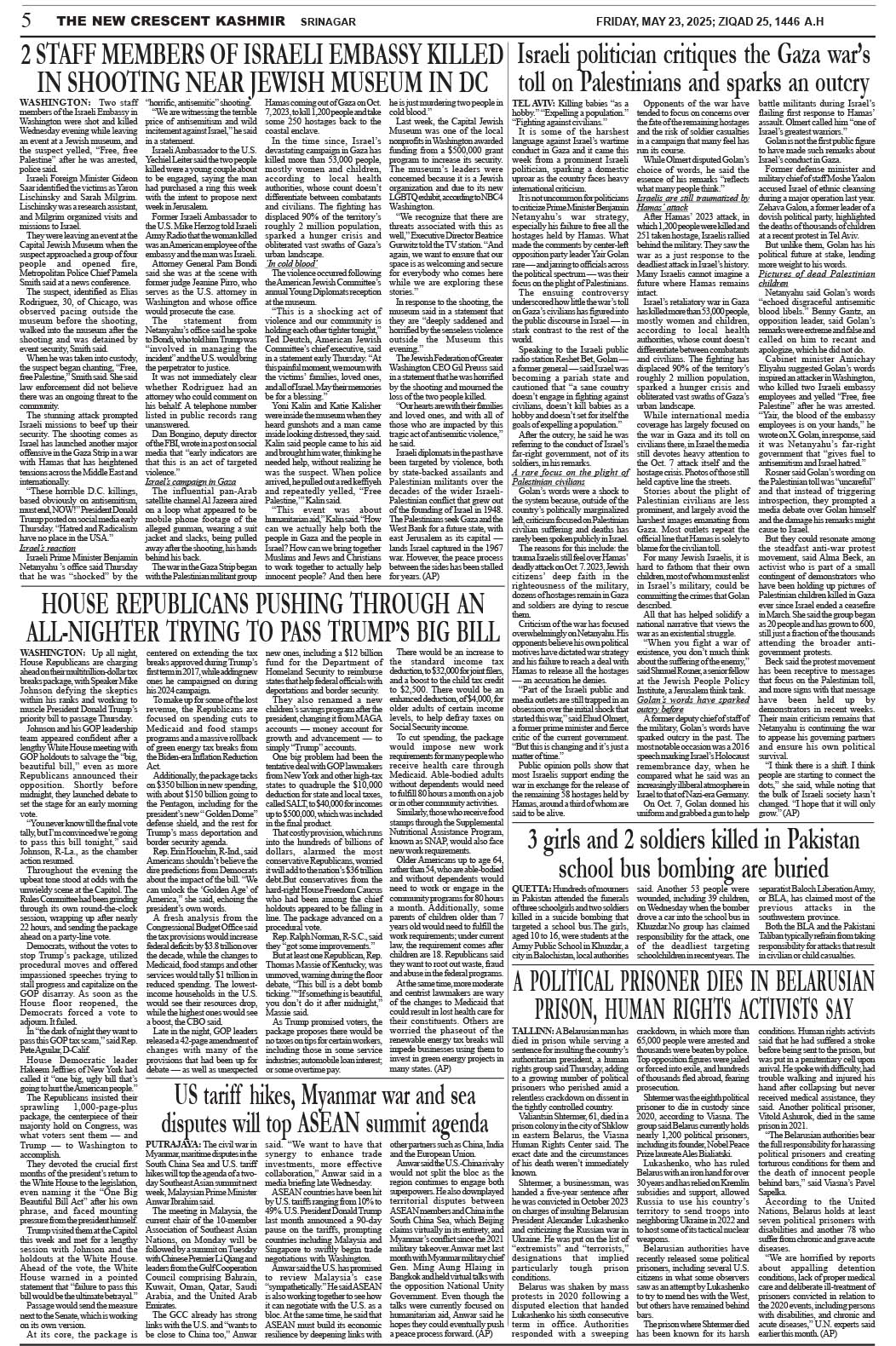 Crescent Kashmir 23-05-2025 Page: 5 May 23, 2025 << First << 5 >> Last >> Page 1Page 2Page 3Page 4Page 5Page 6Page 7Page 8 × Crescent Kashmir 23-05-2025 << First << 5 >> Last >> CK 1CK 2CK 3CK 4CK 5CK 6CK 7CK 8 CK 5