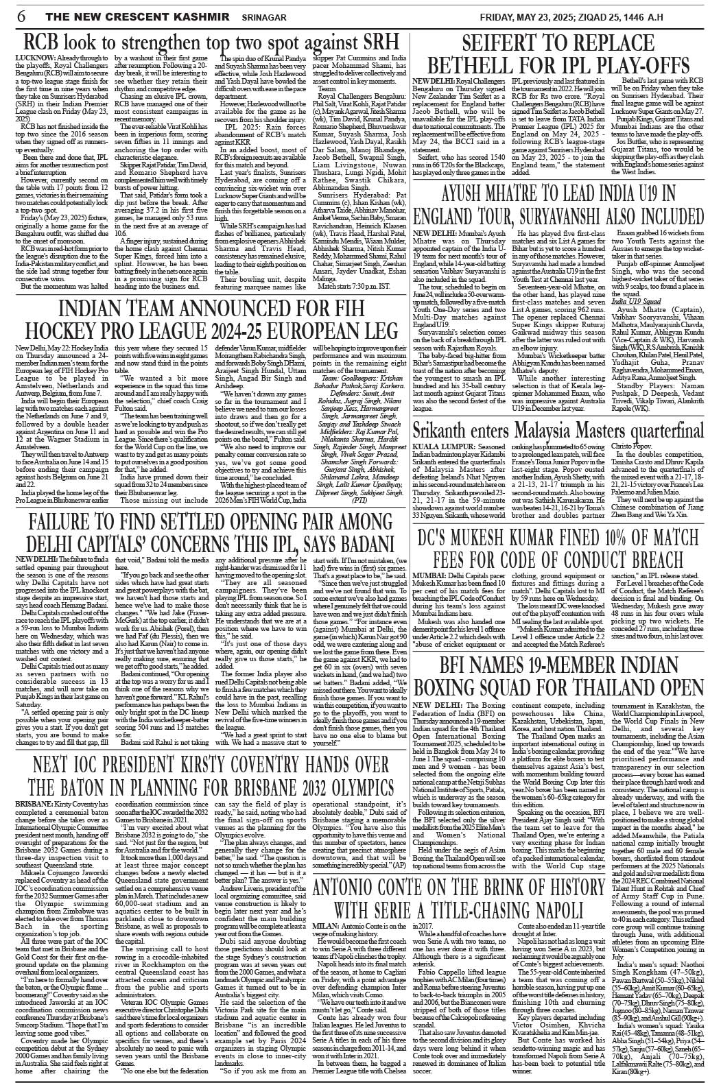 Crescent Kashmir 23-05-2025 Page: 6 May 23, 2025 << First << 6 >> Last >> Page 1Page 2Page 3Page 4Page 5Page 6Page 7Page 8 × Crescent Kashmir 23-05-2025 << First << 6 >> Last >> CK 1CK 2CK 3CK 4CK 5CK 6CK 7CK 8 CK 6