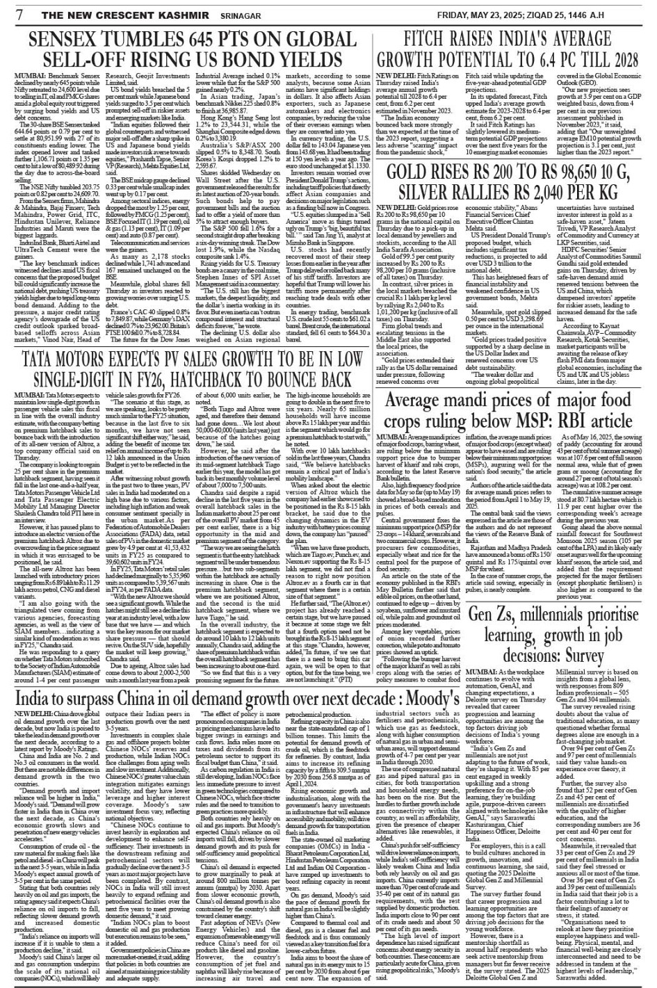 Crescent Kashmir 23-05-2025 Page: 7 May 23, 2025 << First << 7 >> Last >> Page 1Page 2Page 3Page 4Page 5Page 6Page 7Page 8 × Crescent Kashmir 23-05-2025 << First << 7 >> Last >> CK 1CK 2CK 3CK 4CK 5CK 6CK 7CK 8 CK 7
