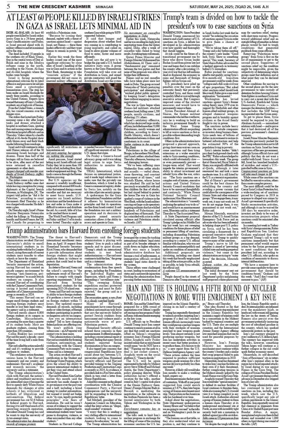Crescent Kashmir 24-05-2025 Page: 5 May 24, 2025 << First << 5 >> Last >> Page 1Page 2Page 3Page 4Page 5Page 6Page 7Page 8 × Crescent Kashmir 24-05-2025 << First << 5 >> Last >> CK 1CK 2CK 3CK 4CK 5CK 6CK 7CK 8 CK 5
