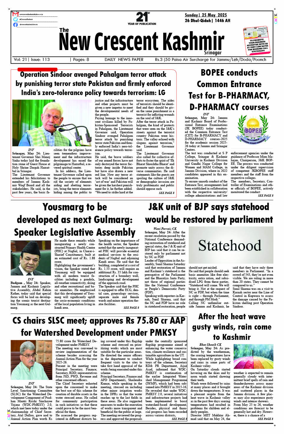 Crescent Kashmir 25-05-2025 May 25, 2025 << First << 1 >> Last >> Page 1Page 2Page 3Page 4Page 5Page 6Page 7Page 8 × Crescent Kashmir 25-05-2025 << First << 1 >> Last >> CK 1CK 2CK 3CK 4CK 5CK 6CK 7CK 8 CK 1