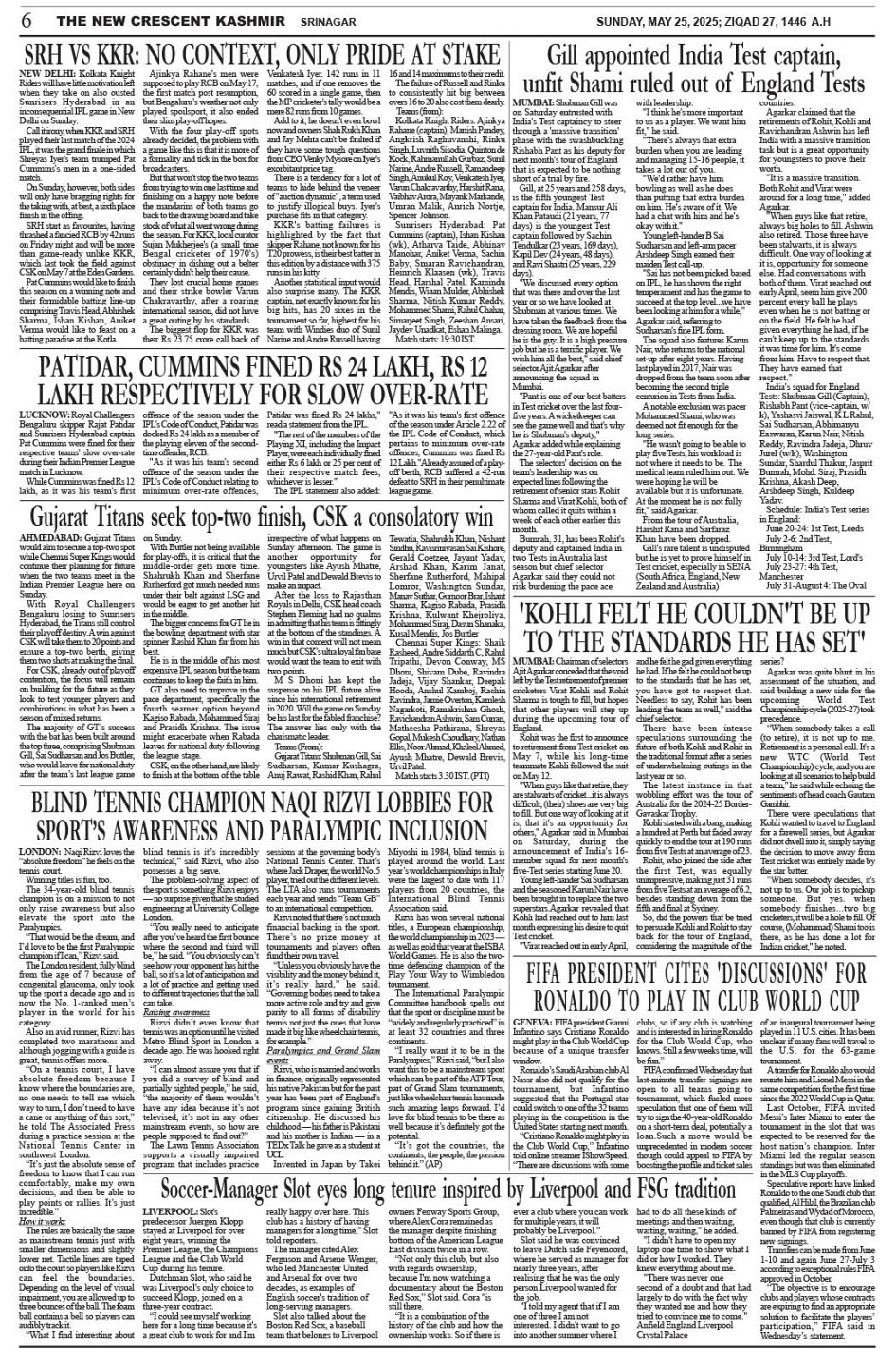 Crescent Kashmir 25-05-2025 Page: 6 May 25, 2025 << First << 6 >> Last >> Page 1Page 2Page 3Page 4Page 5Page 6Page 7Page 8 × Crescent Kashmir 25-05-2025 << First << 6 >> Last >> CK 1CK 2CK 3CK 4CK 5CK 6CK 7CK 8 CK 6