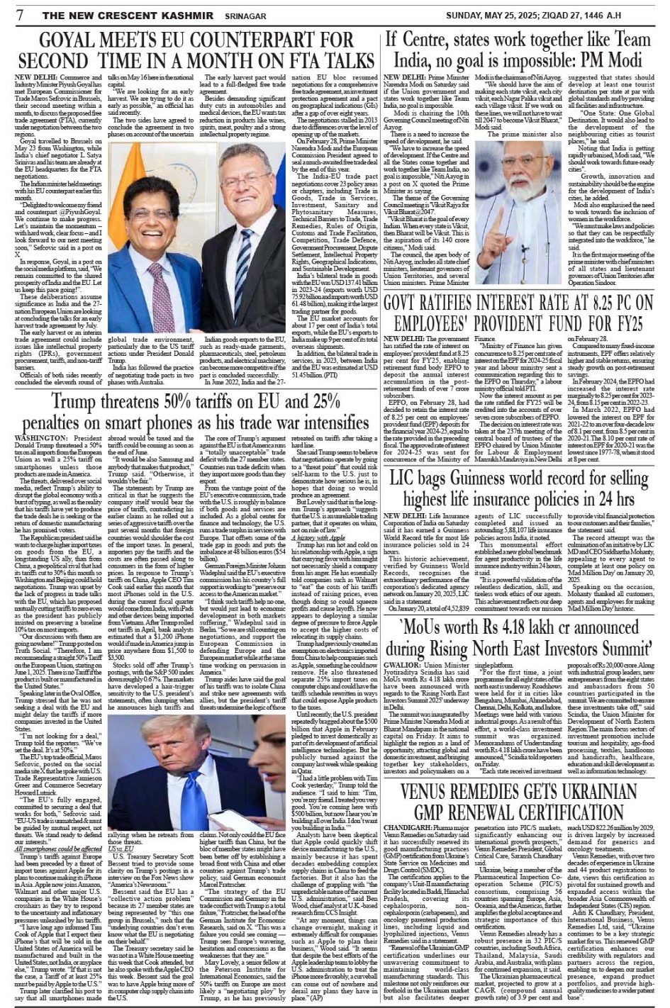 Crescent Kashmir 25-05-2025 Page: 7 May 25, 2025 << First << 7 >> Last >> Page 1Page 2Page 3Page 4Page 5Page 6Page 7Page 8 × Crescent Kashmir 25-05-2025 << First << 7 >> Last >> CK 1CK 2CK 3CK 4CK 5CK 6CK 7CK 8 CK 7