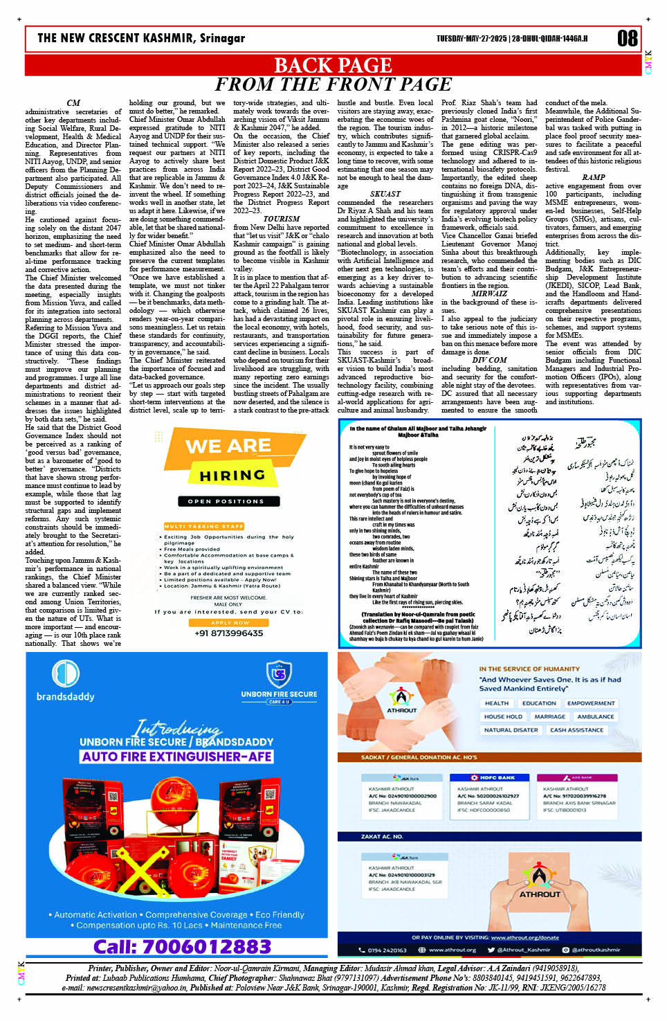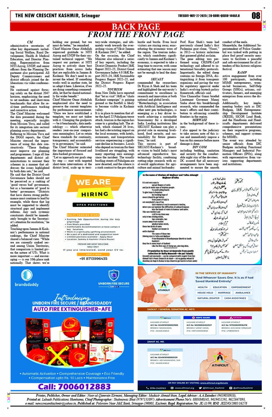 Crescent Kashmir 27-05-2025 Page: 8 May 27, 2025 << First << 8 >> Last >> Page 1Page 2Page 3Page 4Page 5Page 6Page 7Page 8 × Crescent Kashmir 27-05-2025 << First << 8 >> Last >> CK 1CK 2CK 3CK 4CK 5CK 6CK 7CK 8 CK 8