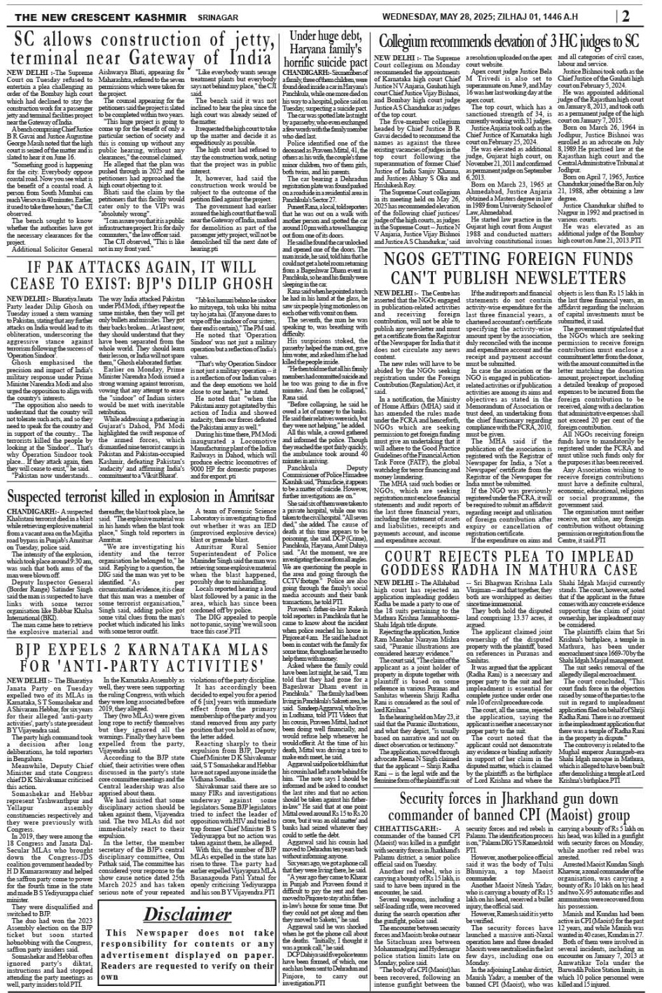 Crescent Kashmir 28-05-2025 Page: 2 May 28, 2025 << First << 2 >> Last >> Page 1Page 2Page 3Page 4Page 5Page 6Page 7Page 8 × Crescent Kashmir 28-05-2025 << First << 2 >> Last >> CK 1CK 2CK 3CK 4CK 5CK 6CK 7CK 8 CK 2