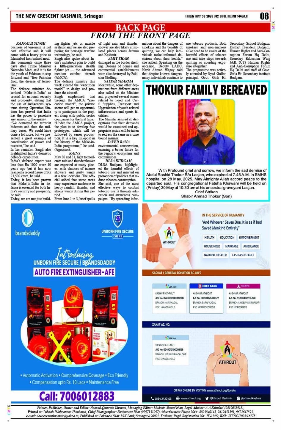 Crescent Kashmir 30-05-2025 Page: 8 May 30, 2025 << First << 8 >> Last >> Page 1Page 2Page 3Page 4Page 5Page 6Page 7Page 8 × Crescent Kashmir 30-05-2025 << First << 8 >> Last >> CK 1CK 2CK 3CK 4CK 5CK 6CK 7CK 8 CK 8