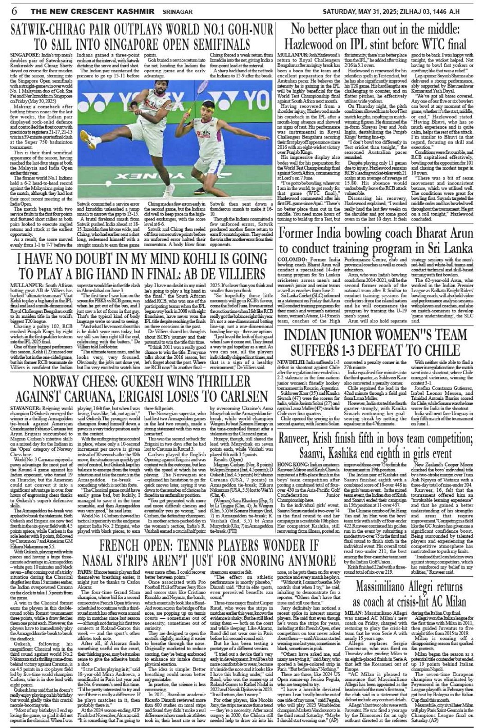 Crescent Kashmir 31-05-2025 Page: 6 May 31, 2025 << First << 6 >> Last >> Page 1Page 2Page 3Page 4Page 5Page 6Page 7Page 8 × Crescent Kashmir 31-05-2025 << First << 6 >> Last >> CK 1CK 2CK 3CK 4CK 5CK 6CK 7CK 8 CK 6