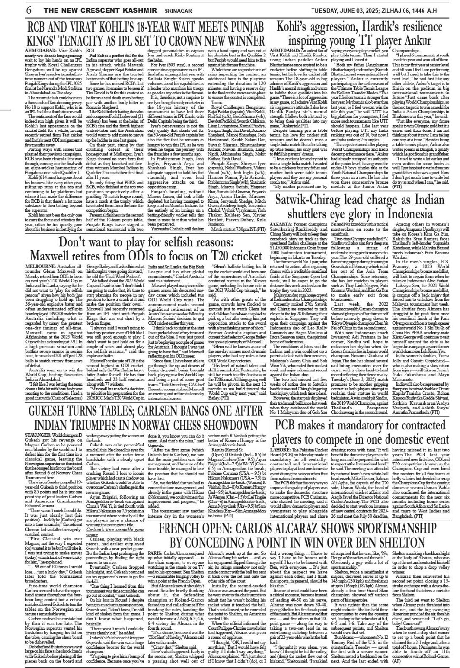 Crescent Kashmir 03-06-2025 Page: 6 June 03, 2025 << First << 6 >> Last >> Page 1Page 2Page 3Page 4Page 5Page 6Page 7Page 8 × Crescent Kashmir 03-06-2025 << First << 6 >> Last >> CK 1CK 2CK 3CK 4CK 5CK 6CK 7CK 8 CK 6