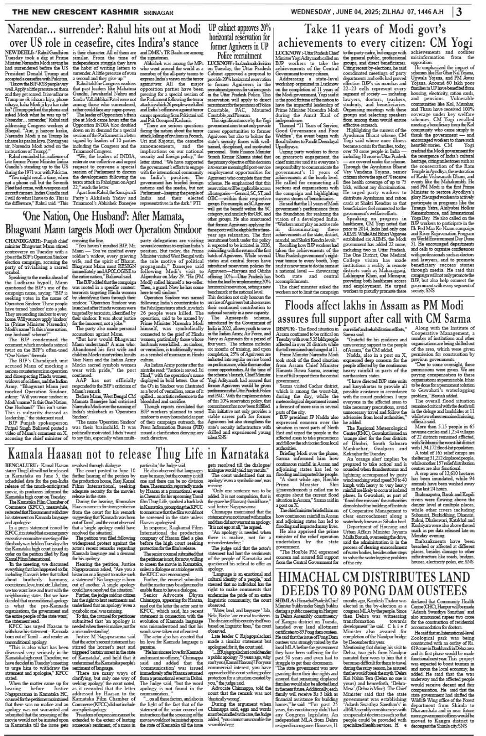 Crescent Kashmir 04-06-2025 Page: 3 June 04, 2025 << First << 3 >> Last >> Page 1Page 2Page 3Page 4Page 5Page 6Page 7Page 8 × Crescent Kashmir 04-06-2025 << First << 3 >> Last >> CK 1CK 2CK 3CK 4CK 5CK 6CK 7CK 8 CK 3