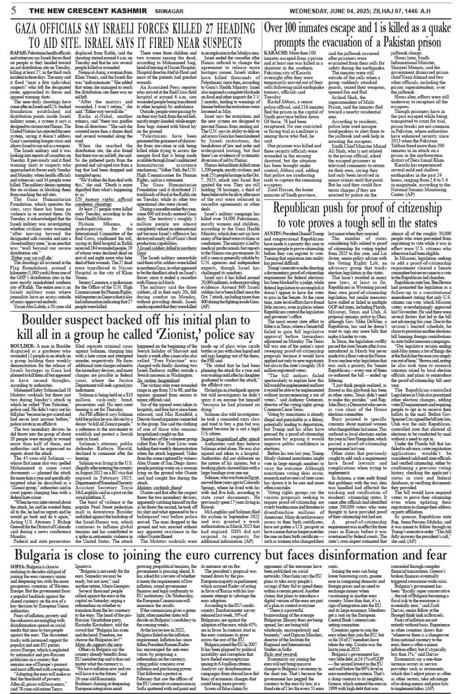 Crescent Kashmir 04-06-2025 Page: 5 June 04, 2025 << First << 5 >> Last >> Page 1Page 2Page 3Page 4Page 5Page 6Page 7Page 8 × Crescent Kashmir 04-06-2025 << First << 5 >> Last >> CK 1CK 2CK 3CK 4CK 5CK 6CK 7CK 8 CK 5
