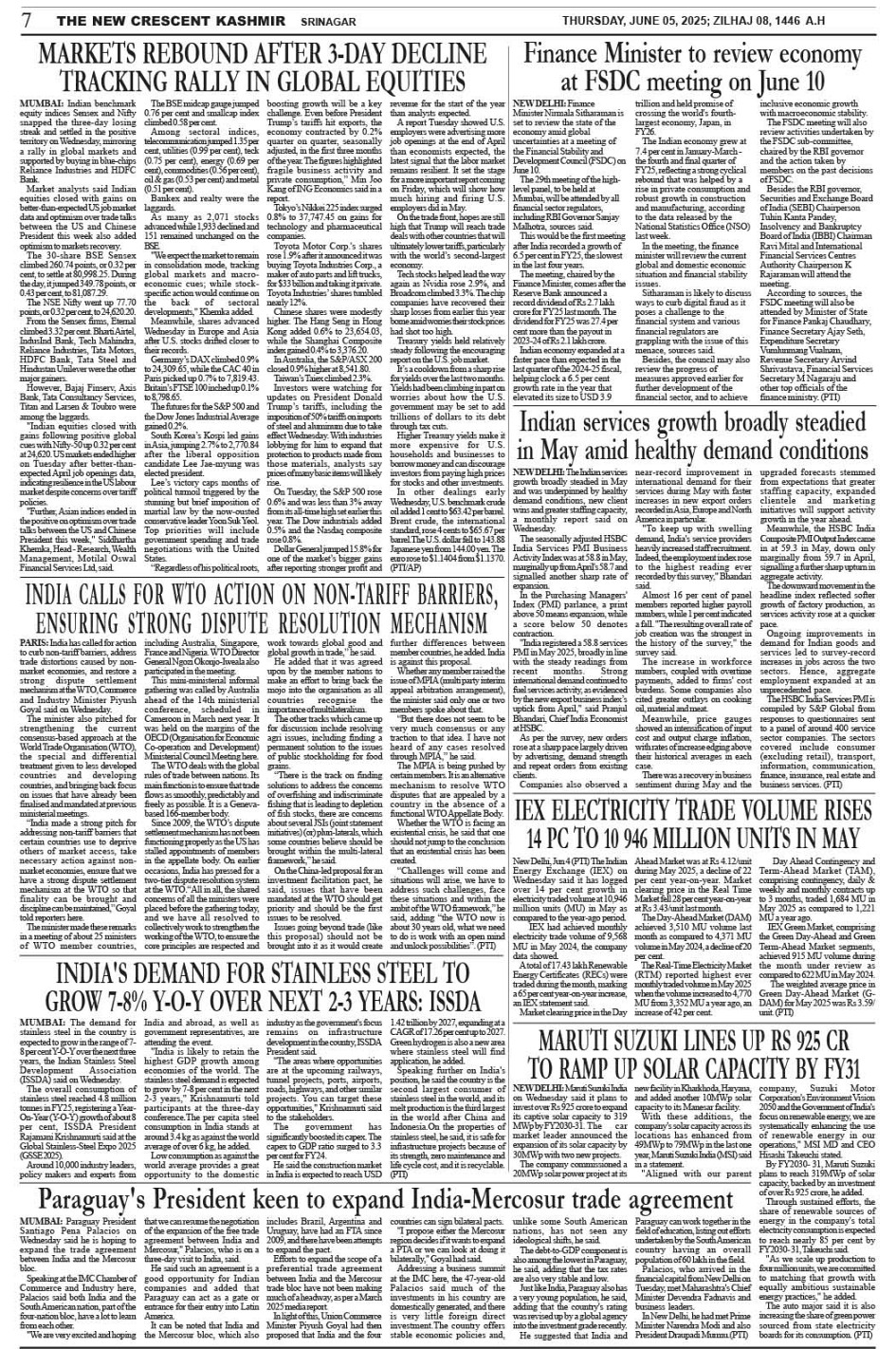 Crescent Kashmir 05-06-2025 Page: 7 June 05, 2025 << First << 7 >> Last >> Page 1Page 2Page 3Page 4Page 5Page 6Page 7Page 8 × Crescent Kashmir 05-06-2025 << First << 7 >> Last >> CK 1CK 2CK 3CK 4CK 5CK 6CK 7CK 8 CK 7