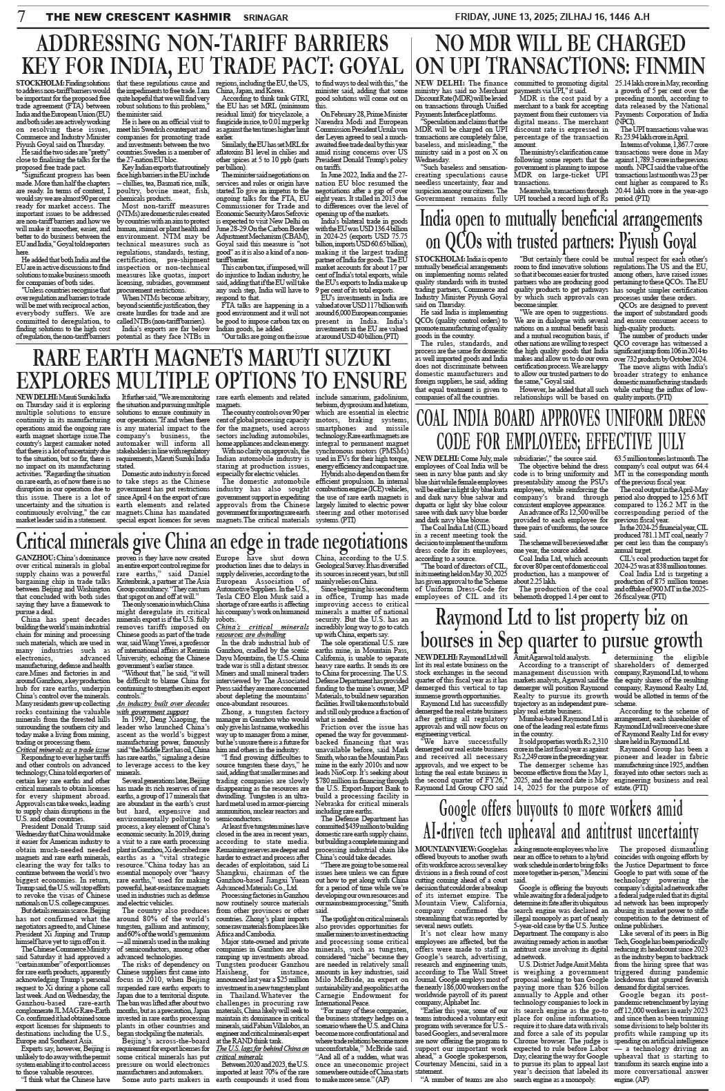 Crescent Kashmir 13-06-2025 Page: 7 June 13, 2025 << First << 7 >> Last >> Page 1Page 2Page 3Page 4Page 5Page 6Page 7Page 8 × Crescent Kashmir 13-06-2025 << First << 7 >> Last >> CK 1CK 2CK 3CK 4CK 5CK 6CK 7CK 8 CK 7