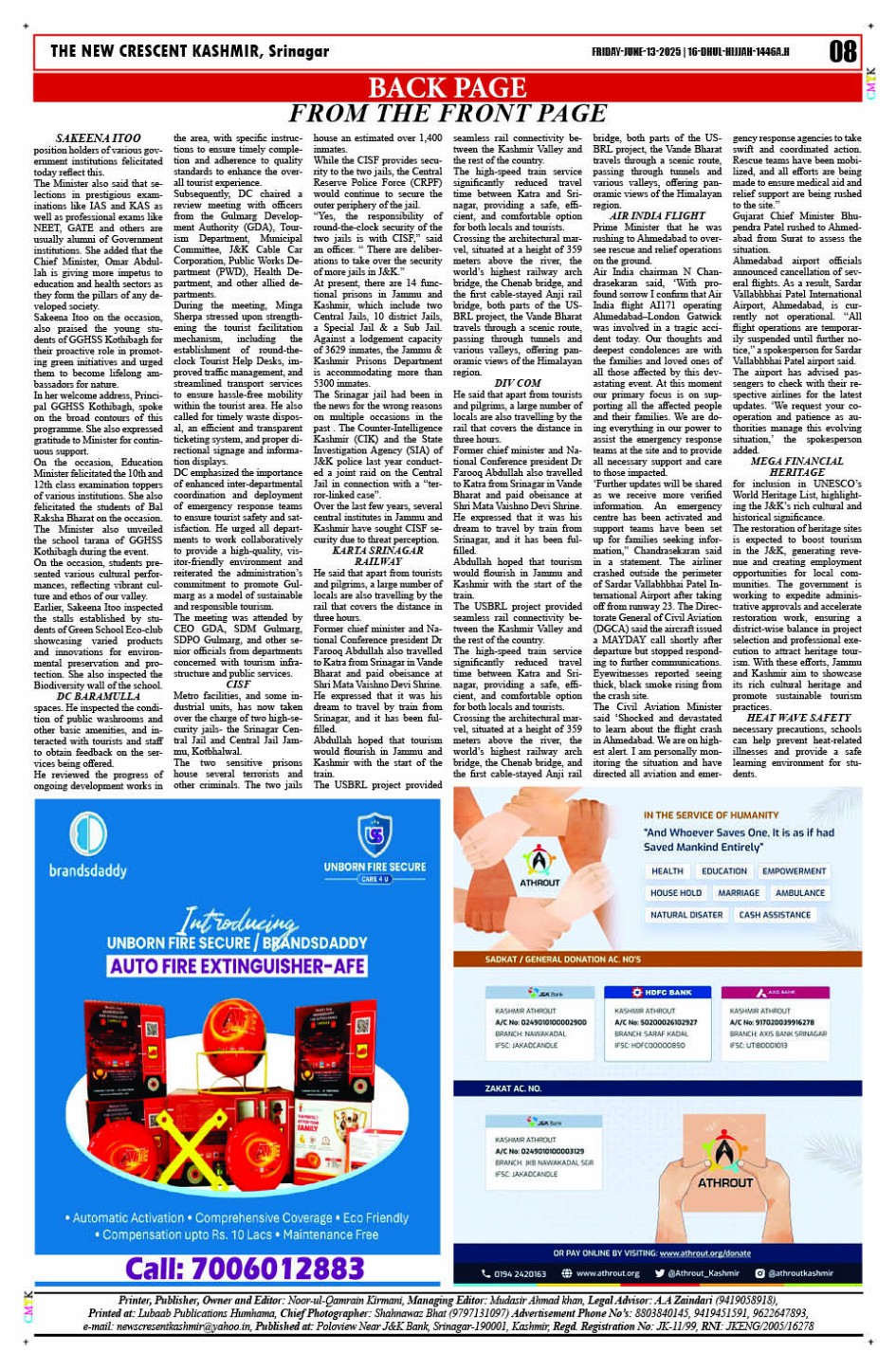 Crescent Kashmir 13-06-2025 Page: 8 June 13, 2025 << First << 8 >> Last >> Page 1Page 2Page 3Page 4Page 5Page 6Page 7Page 8 × Crescent Kashmir 13-06-2025 << First << 8 >> Last >> CK 1CK 2CK 3CK 4CK 5CK 6CK 7CK 8 CK 8