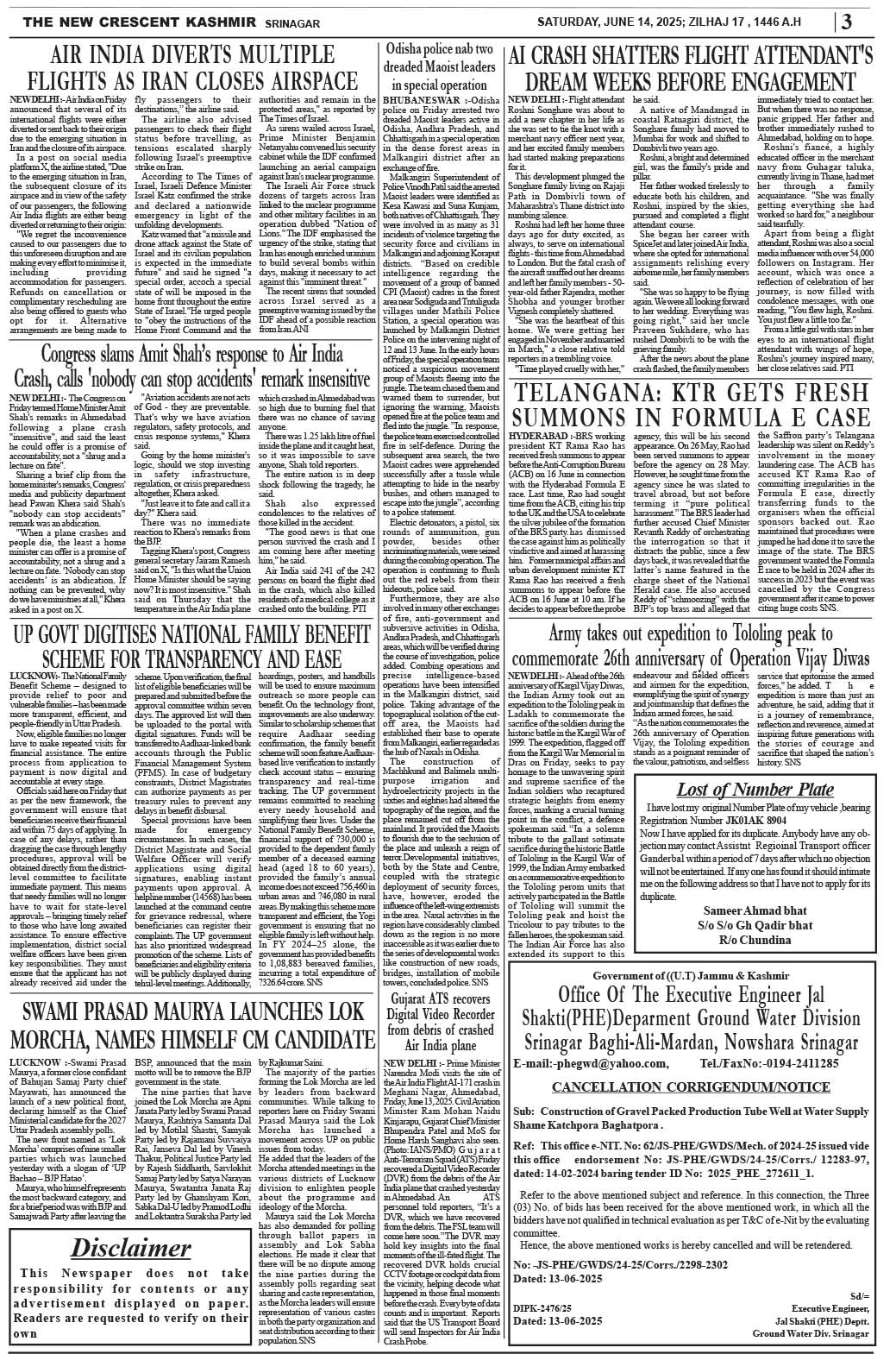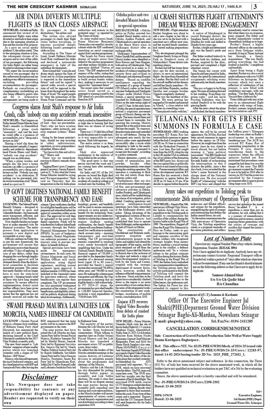 Crescent Kashmir 14-06-2025 Page: 2 June 14, 2025 << First << 2 >> Last >> Page 1Page 2Page 3Page 4Page 5Page 6Page 7 × Crescent Kashmir 14-06-2025 << First << 2 >> Last >> CK 2CK 3CK 4CK 5CK 6CK 7CK 8 CK 3
