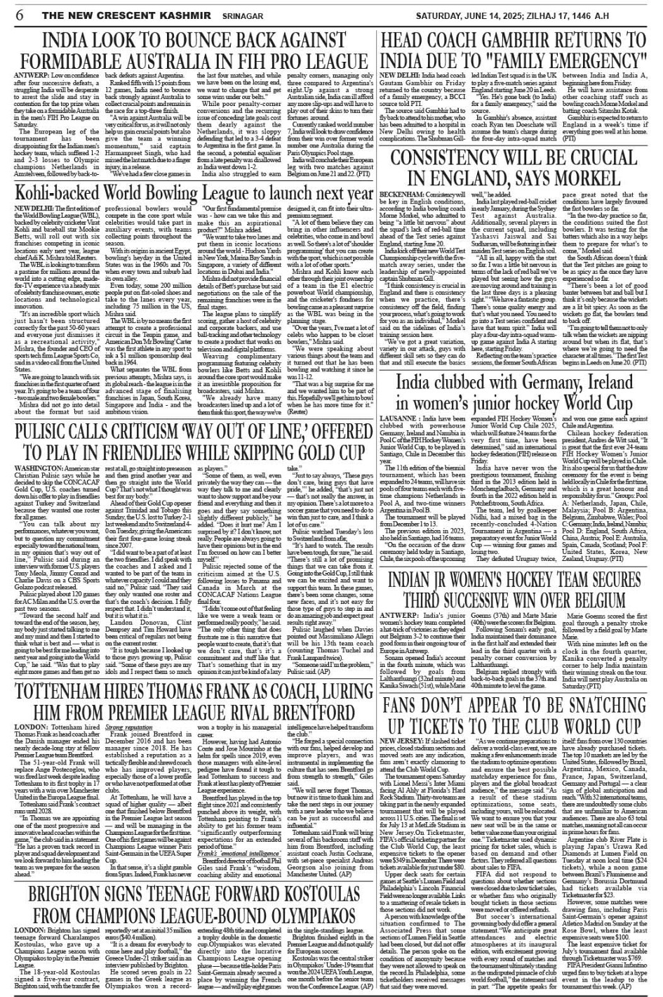 Crescent Kashmir 14-06-2025 Page: 5 June 14, 2025 << First << 5 >> Last >> Page 1Page 2Page 3Page 4Page 5Page 6Page 7 × Crescent Kashmir 14-06-2025 << First << 5 >> Last >> CK 2CK 3CK 4CK 5CK 6CK 7CK 8 CK 6