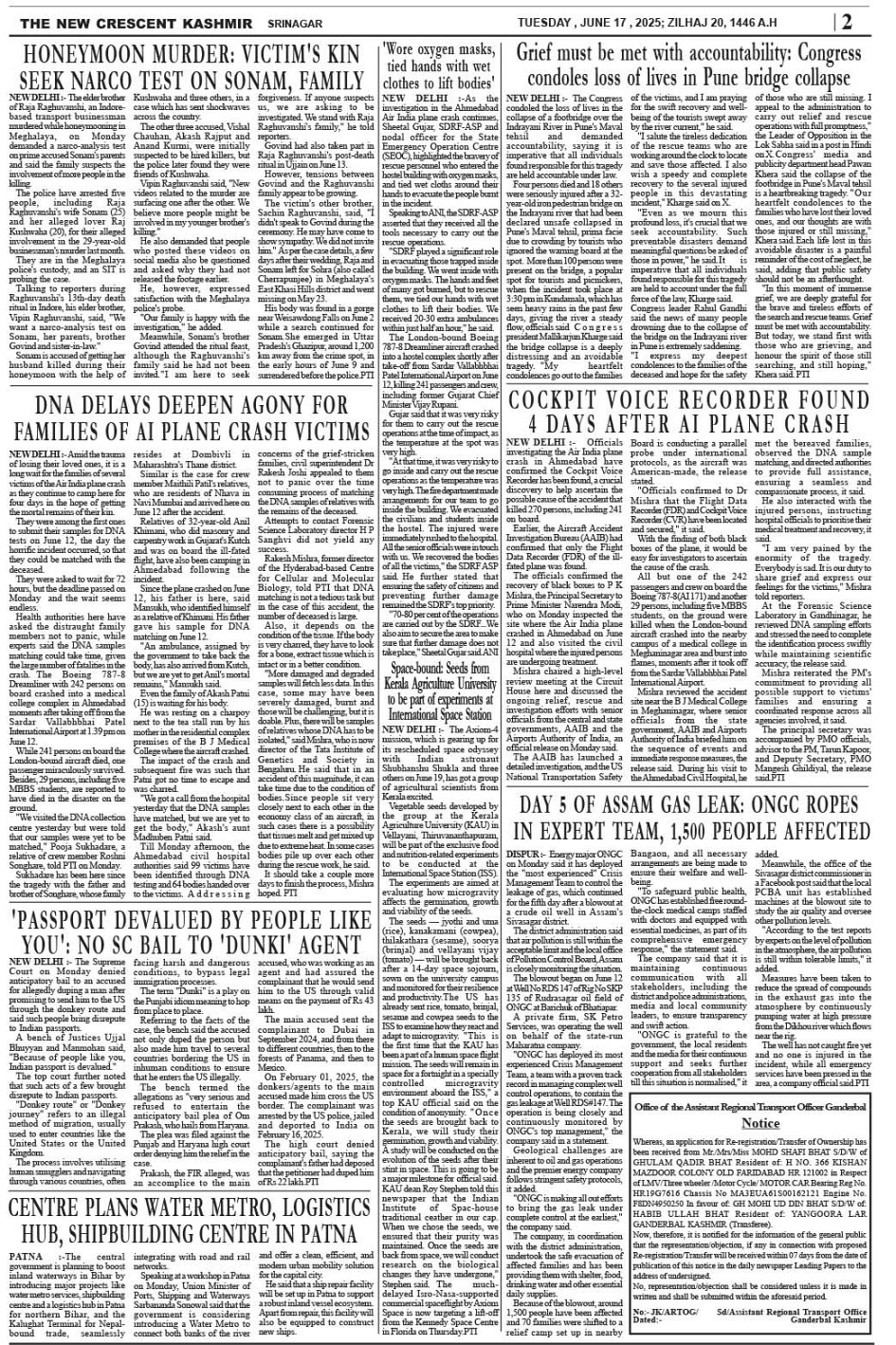 Crescent Kashmir 17-06-2025 Page: 2 June 17, 2025 << First << 2 >> Last >> Page 1Page 2Page 3Page 4Page 5Page 6Page 7Page 8 × Crescent Kashmir 17-06-2025 << First << 2 >> Last >> CK 1CK 2CK 3CK 4CK 5CK 6CK 7CK 8 CK 2