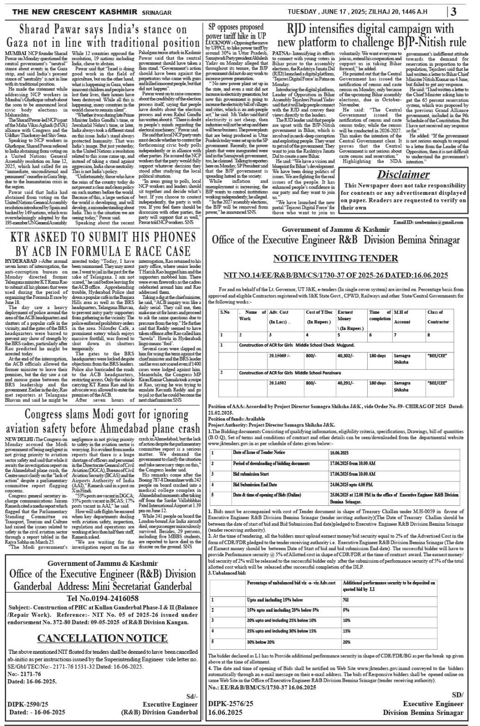 Crescent Kashmir 17-06-2025 Page: 3 June 17, 2025 << First << 3 >> Last >> Page 1Page 2Page 3Page 4Page 5Page 6Page 7Page 8 × Crescent Kashmir 17-06-2025 << First << 3 >> Last >> CK 1CK 2CK 3CK 4CK 5CK 6CK 7CK 8 CK 3