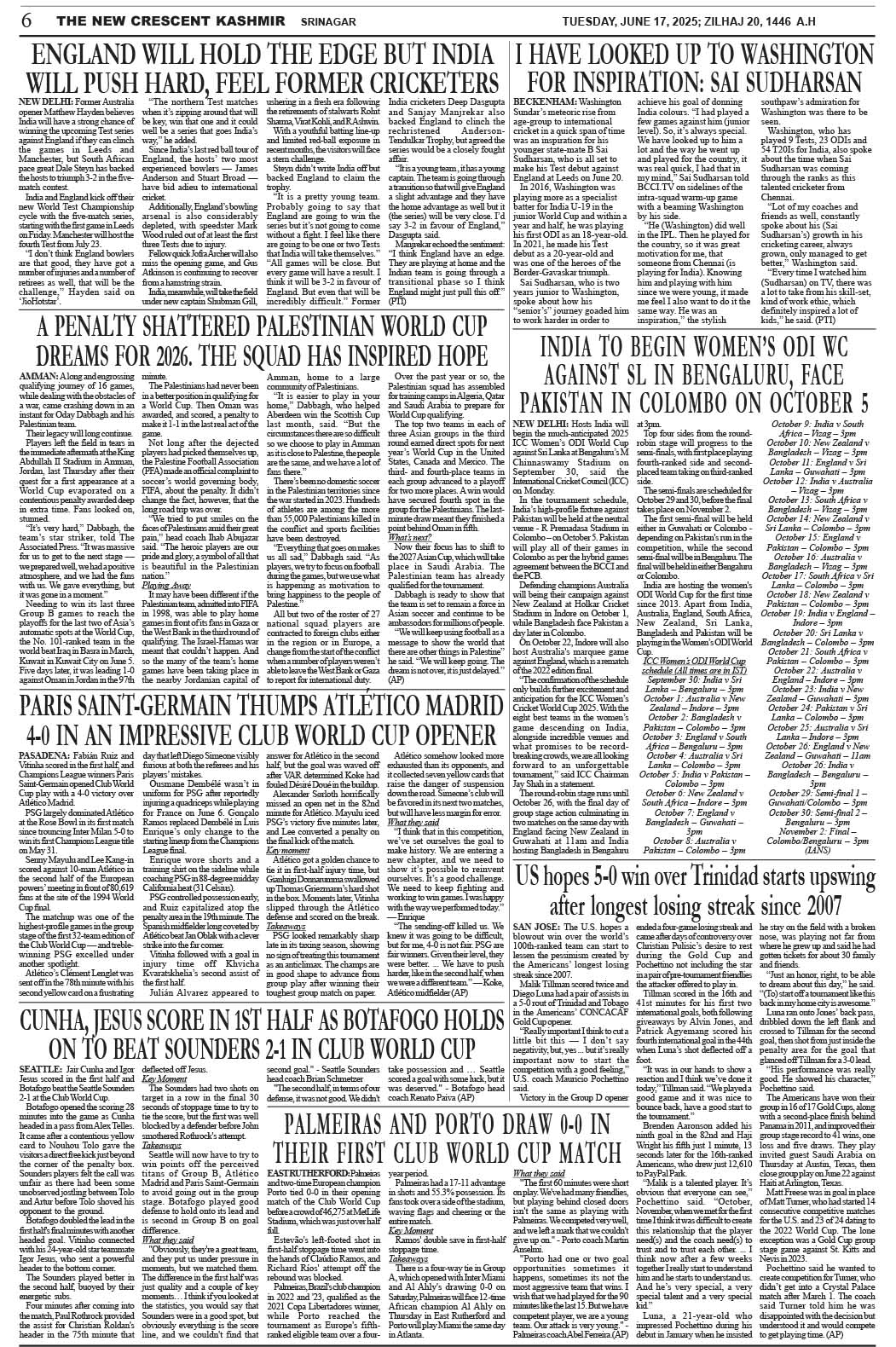 Crescent Kashmir 17-06-2025 Page: 6 June 17, 2025 << First << 6 >> Last >> Page 1Page 2Page 3Page 4Page 5Page 6Page 7Page 8 × Crescent Kashmir 17-06-2025 << First << 6 >> Last >> CK 1CK 2CK 3CK 4CK 5CK 6CK 7CK 8 CK 6