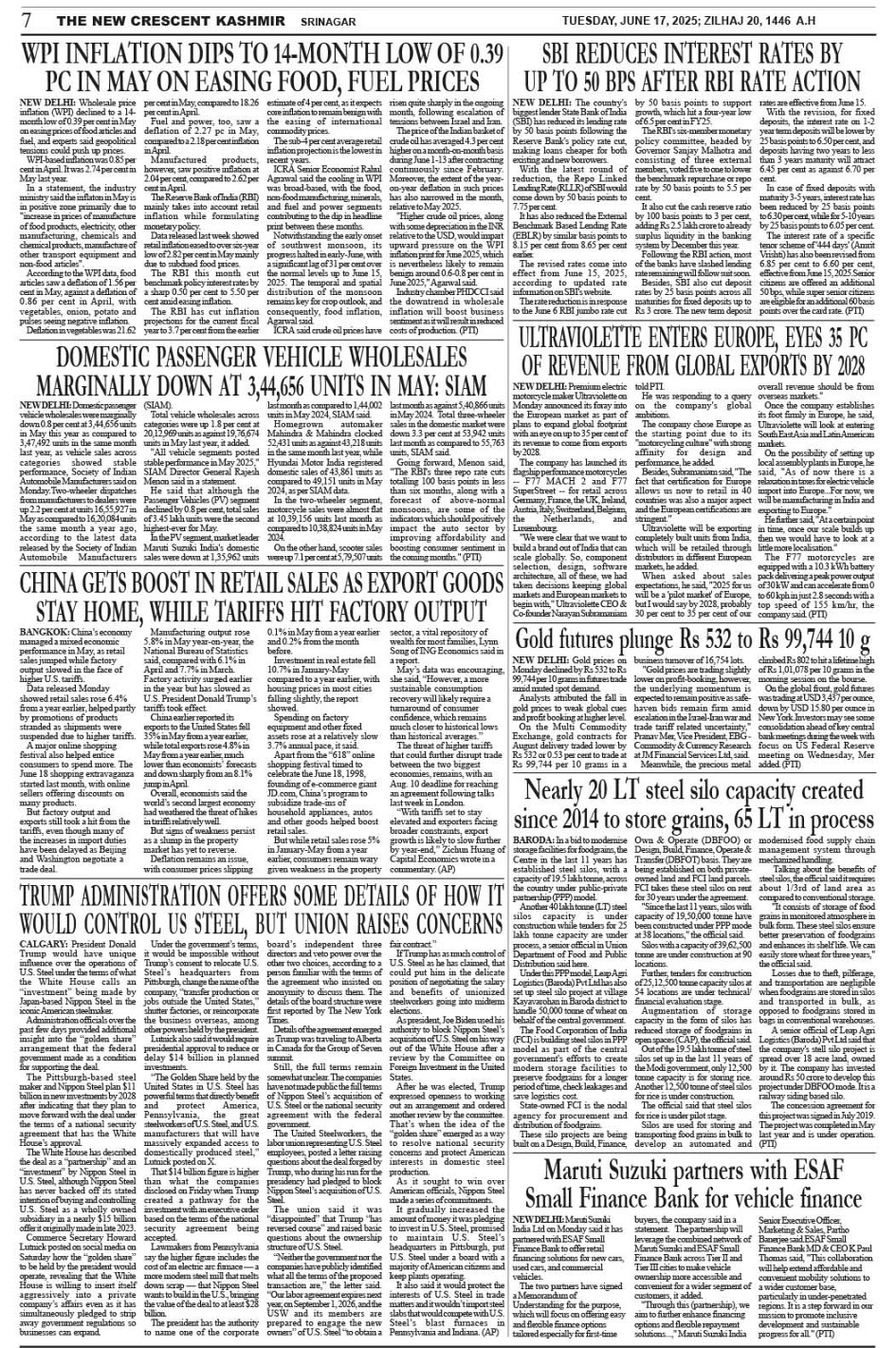 Crescent Kashmir 17-06-2025 Page: 7 June 17, 2025 << First << 7 >> Last >> Page 1Page 2Page 3Page 4Page 5Page 6Page 7Page 8 × Crescent Kashmir 17-06-2025 << First << 7 >> Last >> CK 1CK 2CK 3CK 4CK 5CK 6CK 7CK 8 CK 7