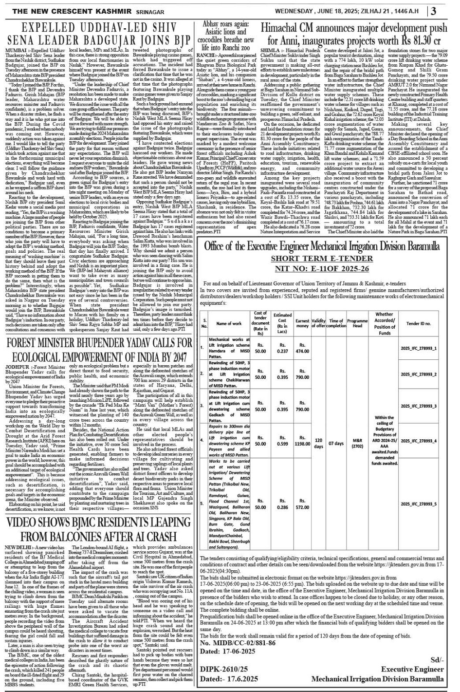 Crescent Kashmir 18-06-2025 Page: 3 June 18, 2025 << First << 3 >> Last >> Page 1Page 2Page 3Page 4Page 5Page 6Page 7Page 8 × Crescent Kashmir 18-06-2025 << First << 3 >> Last >> CK 1CK 2CK 3CK 4CK 5CK 6CK 7CK 8 CK 3