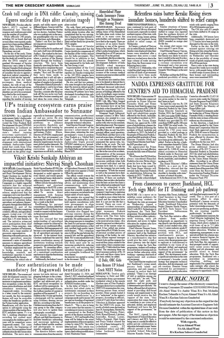 Crescent Kashmir 19-06-2025 Page: 3 June 19, 2025 << First << 3 >> Last >> Page 1Page 2Page 3Page 4Page 5Page 6Page 7Page 8 × Crescent Kashmir 19-06-2025 << First << 3 >> Last >> CK 1CK 2CK 3CK 4CK 5CK 6CK 7CK 8 CK 3