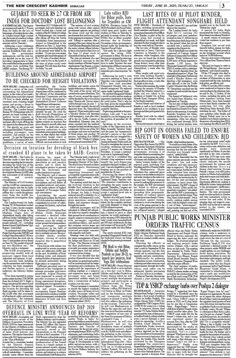 Crescent Kashmir 20-06-2025 Page: 3 June 20, 2025 << First << 3 >> Last >> Page 1Page 2Page 3Page 4Page 5Page 6Page 7Page 8 × Crescent Kashmir 20-06-2025 << First << 3 >> Last >> CK 1CK 2CK 3CK 4CK 5CK 6CK 7CK 8 CK 3