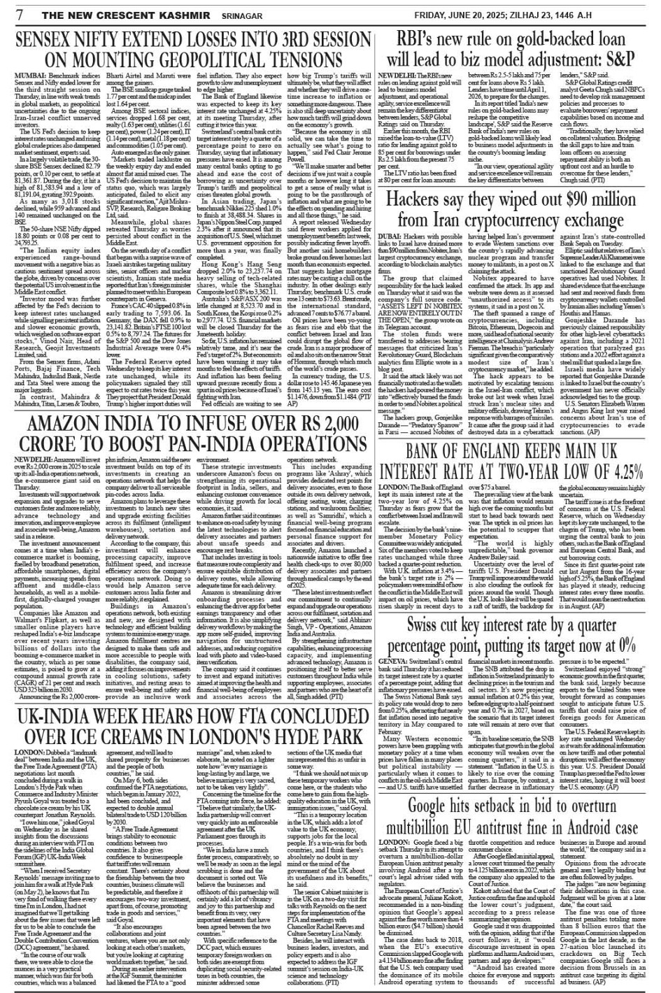 Crescent Kashmir 20-06-2025 Page: 7 June 20, 2025 << First << 7 >> Last >> Page 1Page 2Page 3Page 4Page 5Page 6Page 7Page 8 × Crescent Kashmir 20-06-2025 << First << 7 >> Last >> CK 1CK 2CK 3CK 4CK 5CK 6CK 7CK 8 CK 7