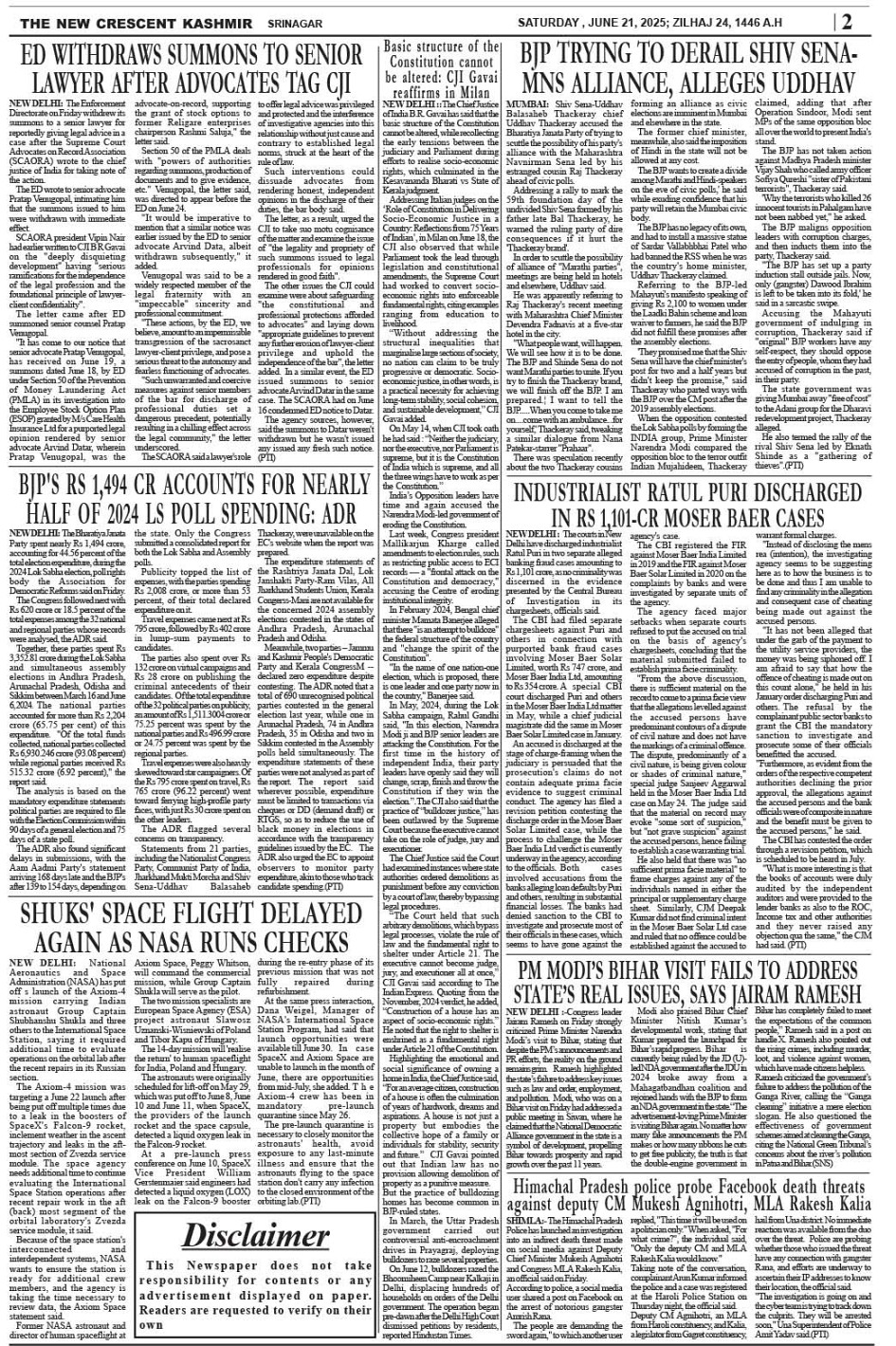 Crescent Kashmir 21-06-2025 Page: 2 June 21, 2025 << First << 2 >> Last >> Page 1Page 2Page 3Page 4Page 5Page 6Page 7Page 8 × Crescent Kashmir 21-06-2025 << First << 2 >> Last >> CK 1CK 2CK 3CK 4CK 5CK 6CK 7CK 8 CK 2