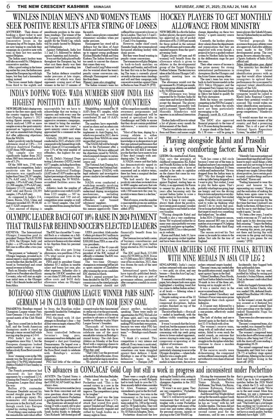 Crescent Kashmir 21-06-2025 Page: 6 June 21, 2025 << First << 6 >> Last >> Page 1Page 2Page 3Page 4Page 5Page 6Page 7Page 8 × Crescent Kashmir 21-06-2025 << First << 6 >> Last >> CK 1CK 2CK 3CK 4CK 5CK 6CK 7CK 8 CK 6