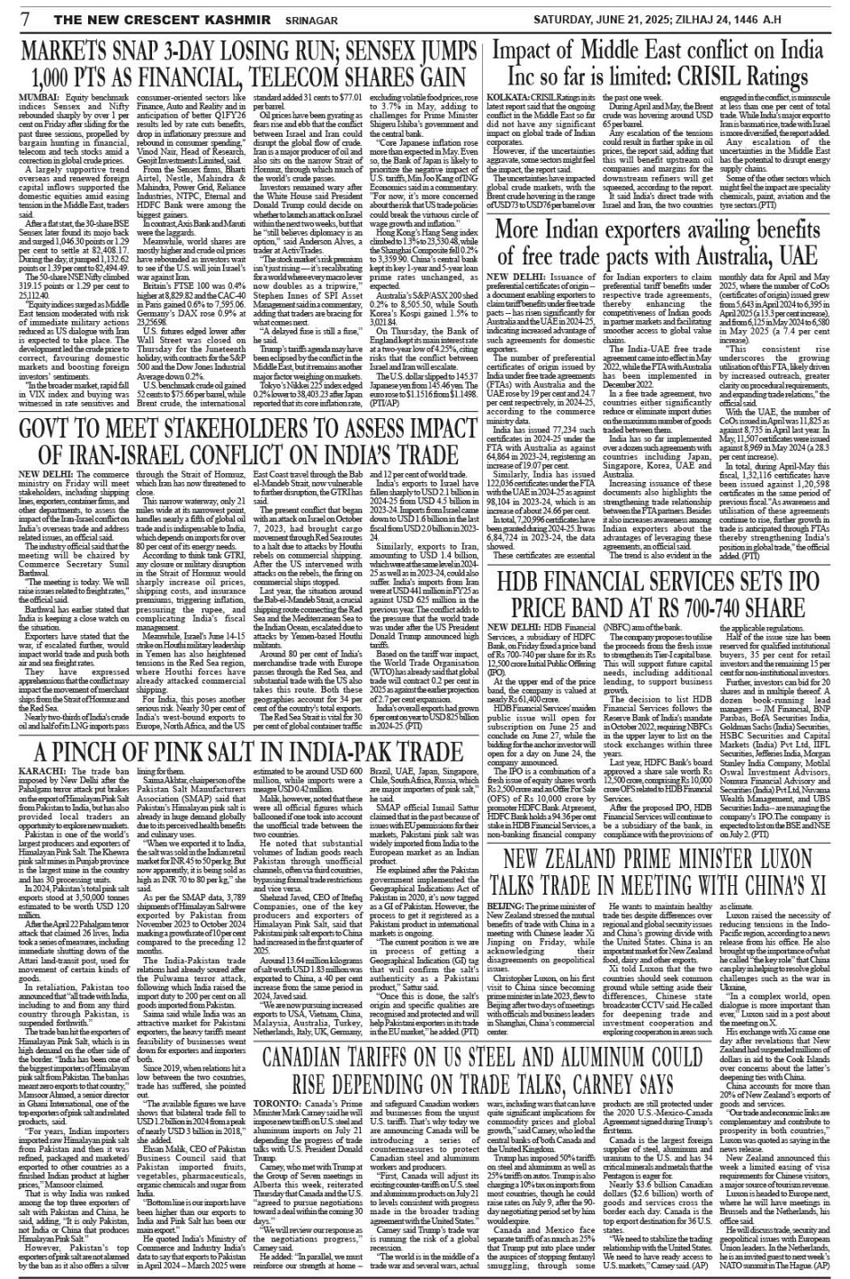 Crescent Kashmir 21-06-2025 Page: 7 June 21, 2025 << First << 7 >> Last >> Page 1Page 2Page 3Page 4Page 5Page 6Page 7Page 8 × Crescent Kashmir 21-06-2025 << First << 7 >> Last >> CK 1CK 2CK 3CK 4CK 5CK 6CK 7CK 8 CK 7