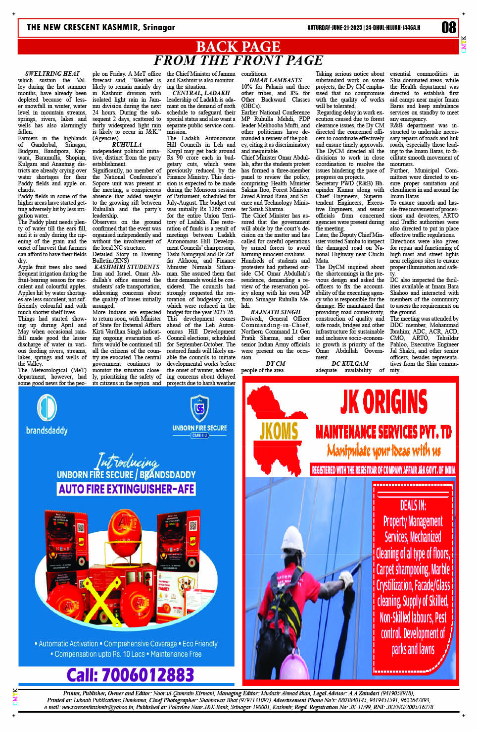 Crescent Kashmir 21-06-2025 Page: 8 June 21, 2025 << First << 8 >> Last >> Page 1Page 2Page 3Page 4Page 5Page 6Page 7Page 8 × Crescent Kashmir 21-06-2025 << First << 8 >> Last >> CK 1CK 2CK 3CK 4CK 5CK 6CK 7CK 8 CK 8