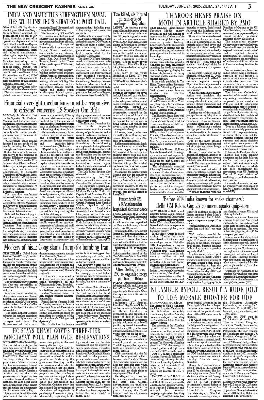 Crescent Kashmir 24-06-2025 Page: 3 June 24, 2025 << First << 3 >> Last >> Page 1Page 2Page 3Page 4Page 5Page 6Page 7Page 8 × Crescent Kashmir 24-06-2025 << First << 3 >> Last >> CK 1CK 2CK 3CK 4CK 5CK 6CK 7CK 8 CK 3